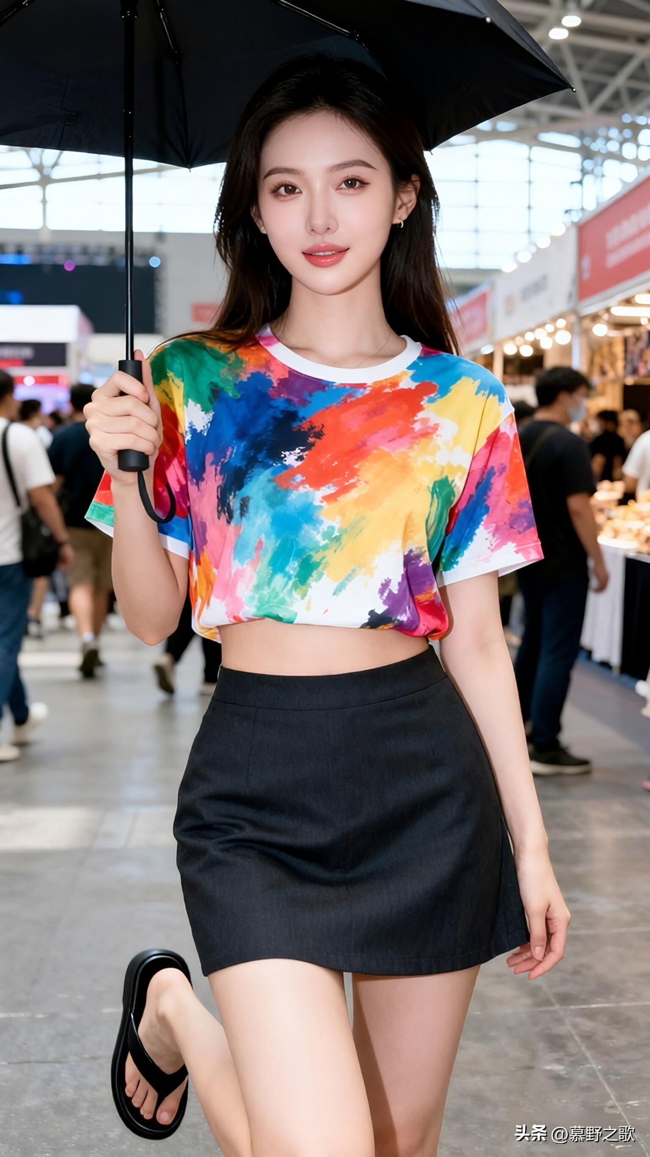 走在街上被这套穿搭狠狠戳中! 彩虹扎染短上衣,搭配卡其色短裙,甜妹感拉满。 黑伞+厚底拖鞋,松弛感拉满,在人群中一眼出众。 生活需要一点色彩,穿喜欢的衣服,心情都变好了。 你们爱这种扎染穿搭吗?扎染穿搭 甜妹穿搭 街头穿搭