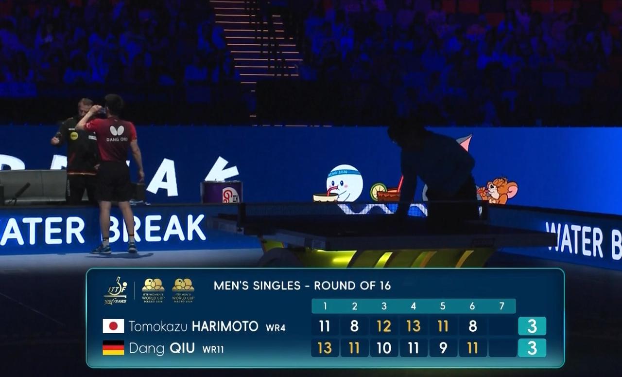 笑死我了!张本智和嗷嗷的叫,把裁判叫烦了。 判了他发球回抛, 结果张本智和挑战鹰眼了, 只有25度, 差的还很远。 上一场裁判也是叛他回抛, 最后也是25度。 说明张本智和发球没问题, 裁判罚他分, 很可能是裁判被他吼叫惹烦了。 不过挑战回来, 张本智和状态不在, 邱党连得4分, 11:8拿到局点, 11:8拿下第六局。 两人打成了3:3平, 决胜局要开打了!
