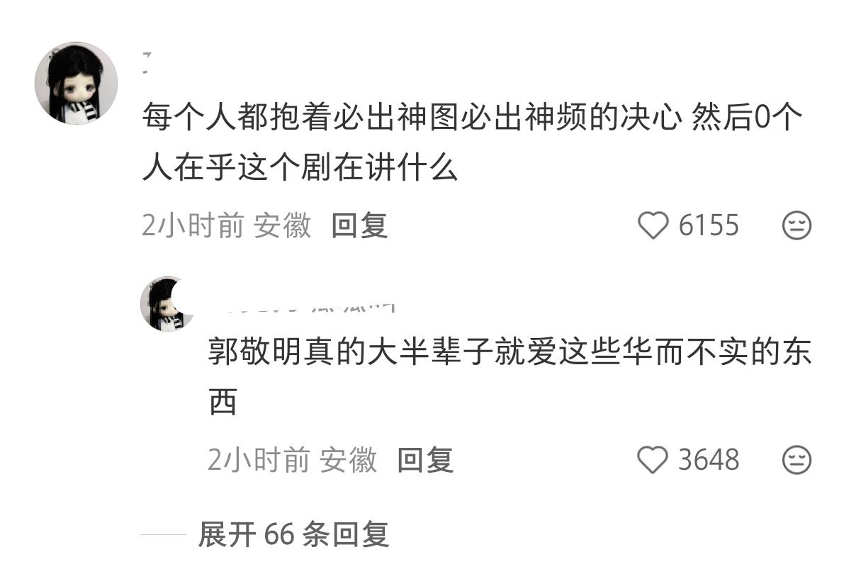 网友评郭敬明新剧《月鳞绮纪》:➡️很像一群人神神秘秘鬼鬼祟祟的密谋晚饭吃啥;➡️像大如大晚上躲在被子里的吃酸杏;➡️故弄玄虚、华而不实、徒有其表、不知所云;➡️郭敬明的书和文字无关,郭敬明的电视剧和剧无关;➡️每个人都抱着必出神频的决心去的,0人在乎剧讲什么(只有曾舜晞正常点;➡️听说你还在搞什么原创,搞来搞去也就这样。月鳞绮纪