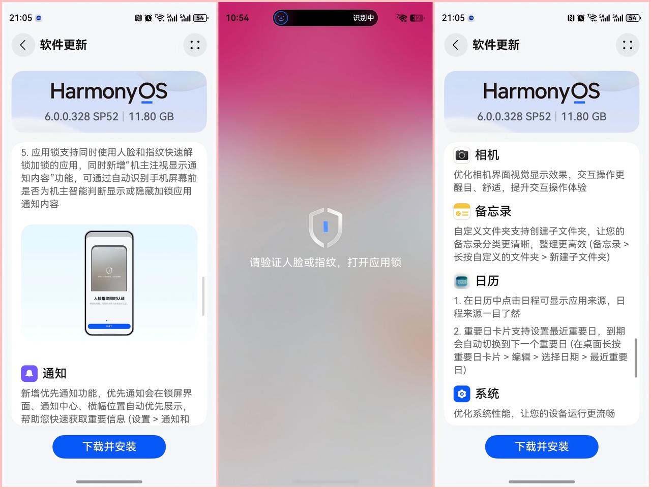 鸿蒙6.0.0.328:应用锁可同时使用人脸和指纹,体验大幅提升!   鸿蒙6.0.0.328新版本持续推进中,目前已有多款机型公测,同时也有多款机型启动花粉Beta。作为一个喜欢尝鲜的用户,我第一时间申请了花粉Beta,目前我的华为nova14 Pro已升级鸿蒙6.0.0.328版本,总体的体验对比此前的版本有一定的提升。   鸿蒙6.0.0.328新版本新增的功能还是挺多的,新增了全新沉浸光感视效,视觉效果更加震撼;隐私安全方面迎来重大升级,新增多项重磅功能。 1、新增智能防诈 2、加密分享新增限时查看功能 3、加密分享新增“水印保护” 4、密码保险箱支持添加和管理更多类型的账号密码(银行卡、门禁锁等) 5、应用锁支持同时使用人脸和指纹快速解锁   通知方面新增优先通知功能,另外相机、备忘录、日历和系统等方面也迎来了功能新增和优化。   鸿蒙6.0.0.328是一次重大更新,升级后体验更好。目前感受最深的除了沉浸光感视效,就是应用锁功能。   鸿蒙6.0此前的版本,应用锁优先使用人脸识别,人脸识别失败后需要才可以手动选择指纹验证或者密码验证。328版本支持人脸和指纹同时解锁,也就是说指纹和人脸提升到了同一级别,用户可以选择其中任意一个快速解锁,使用体验大幅提升。   鸿蒙6.0.0.328值得升级,想体验的朋友可以打开我的华为,然后点击升级尝鲜申请体验!