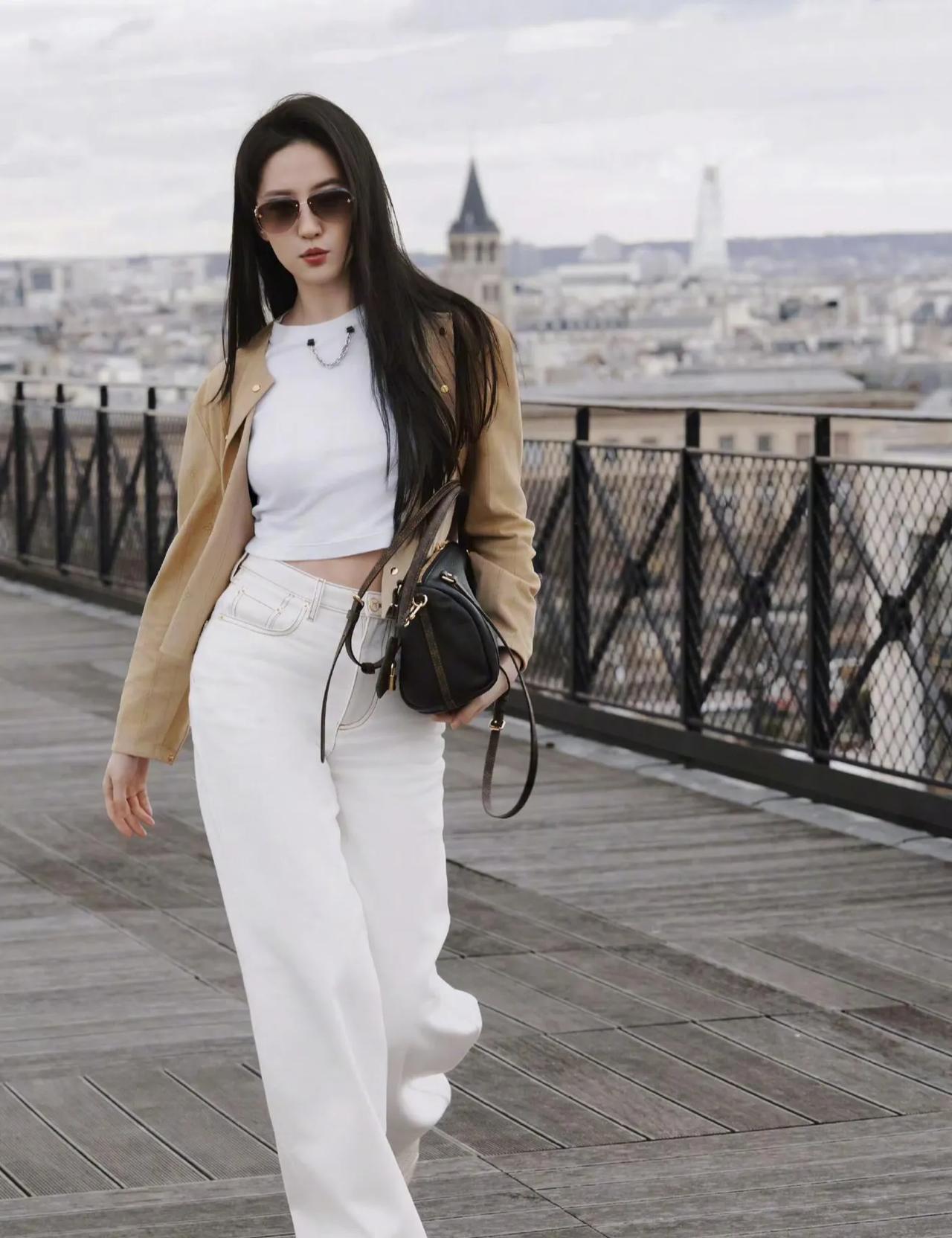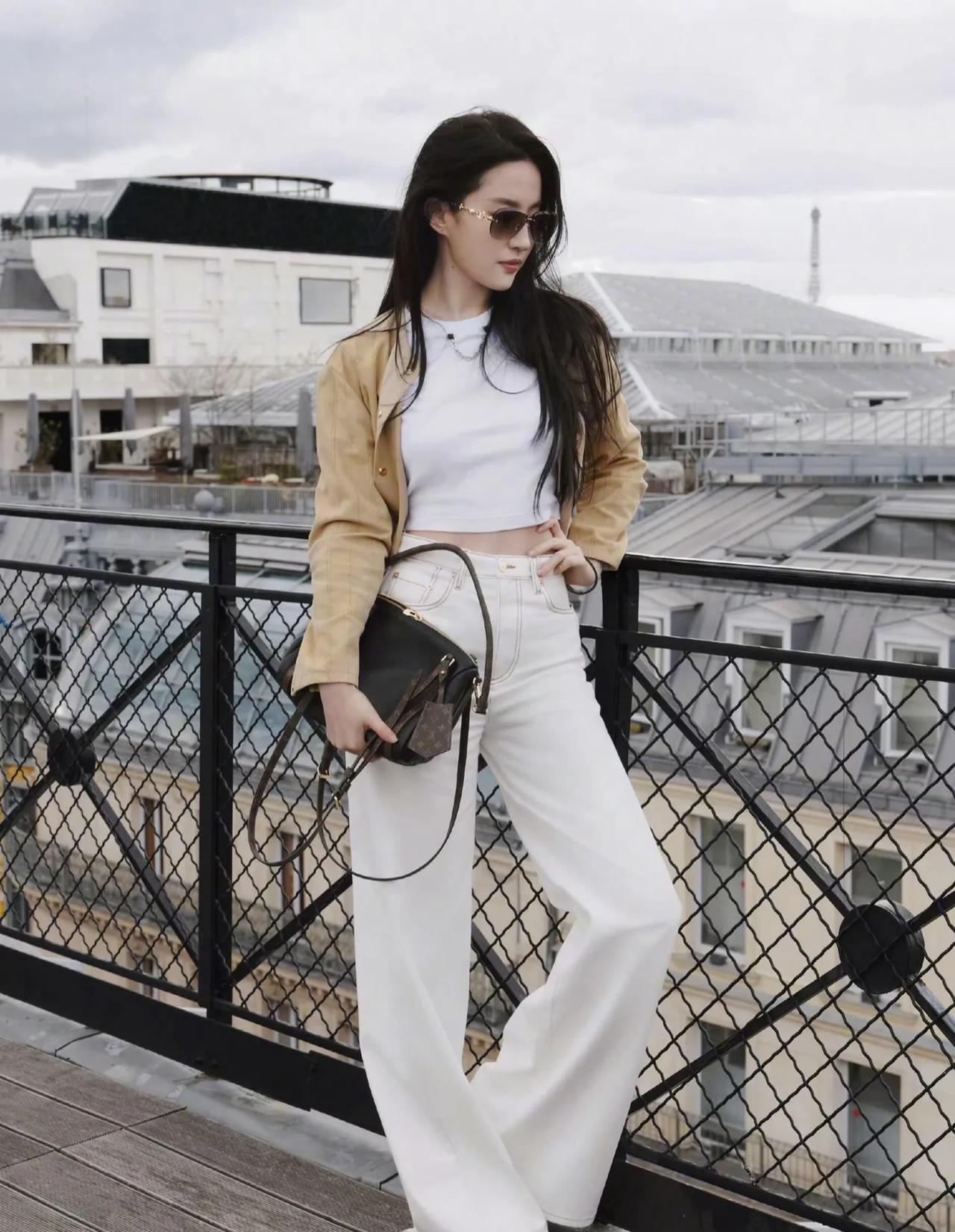 刘亦菲老钱风造型太绝了 刘亦菲这组老钱风穿搭直接封神!🤎 卡其色短外套搭配白T与白色阔腿裤,松弛又显贵。 简约的黑金配饰点缀,完美拿捏低调奢华感,不费力就赢很大。 刘亦菲 刘亦菲私服 老钱风