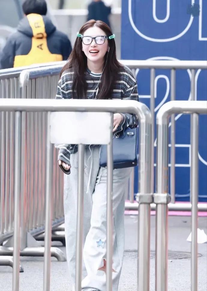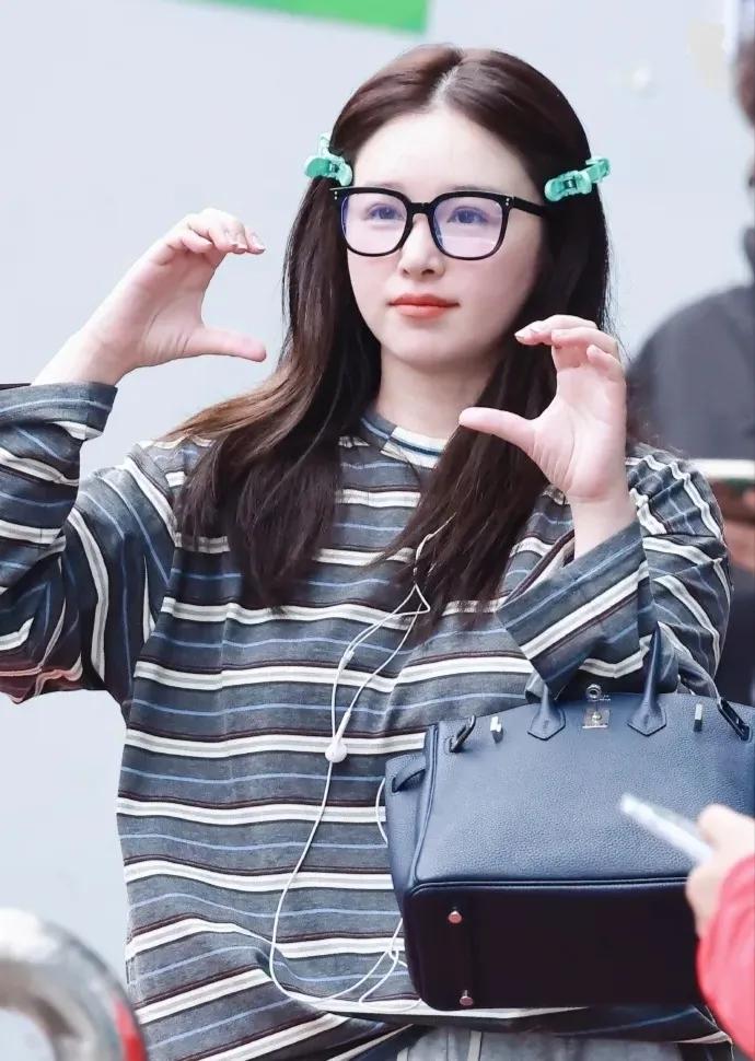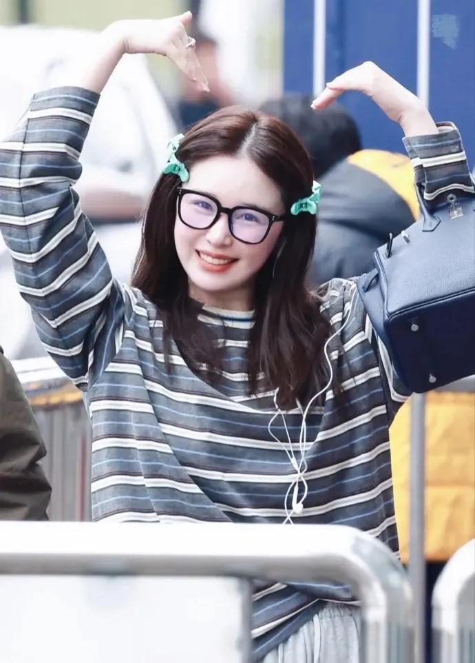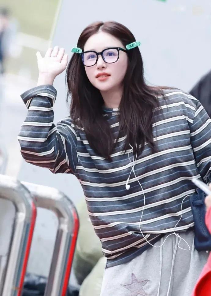 阚清子春日穿搭好清新 阚清子这组私服太有春日氛围感啦🌿 条纹衫搭配浅灰阔腿裤,简约又舒适。 头上别着绿色发夹,比心的样子超可爱,满满的活力感~ 阚清子 明星私服 春日穿搭