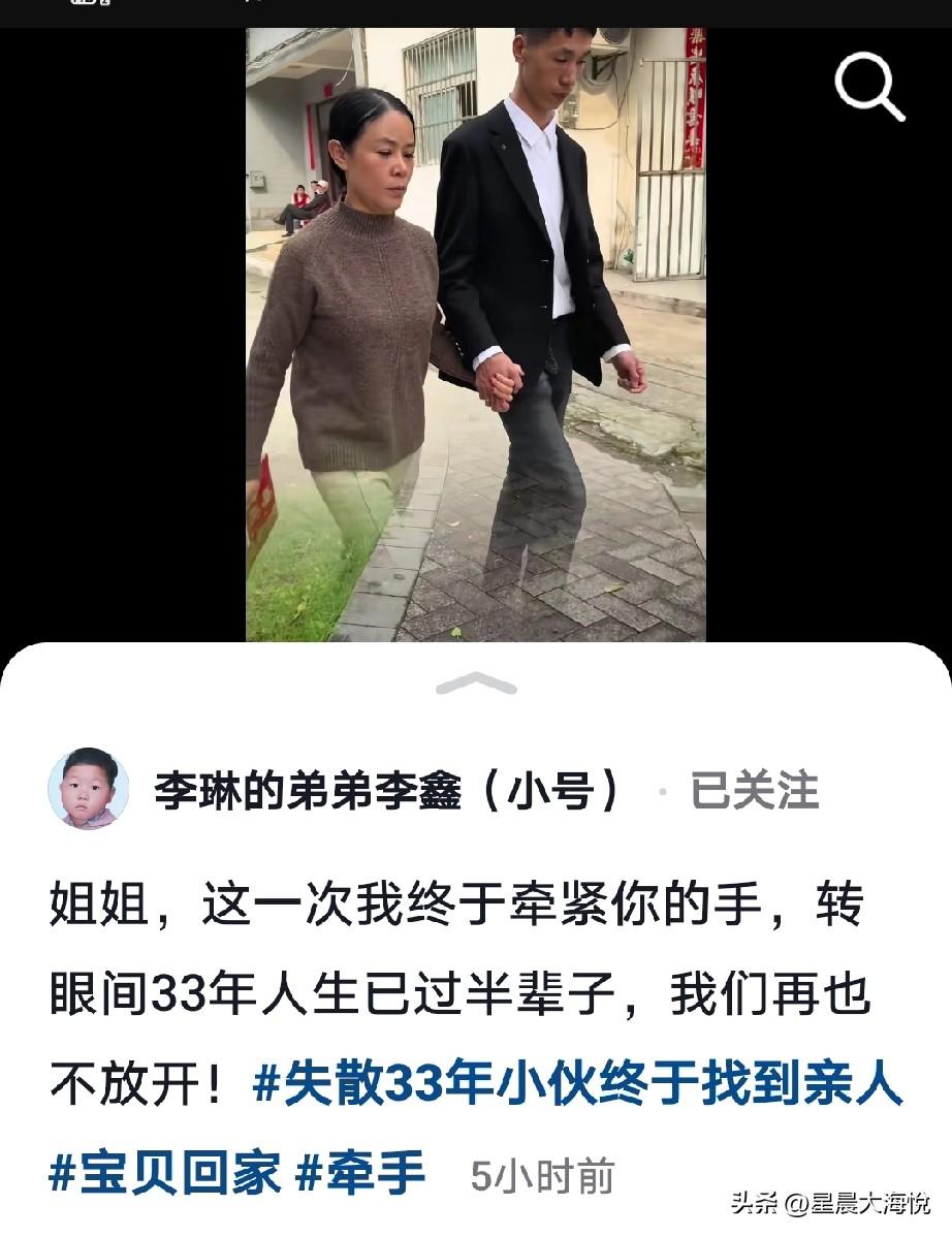 李鑫这是受了什么刺激吗? 不但昨天把所有隐藏的视频公开, 现在又开通了一个小号, 而且发布的视频都是有关姐姐的, 我刚刚就是刷到了他和姐姐牵手的视频, 李鑫还在下面发文说,姐姐,这一次我终于牵紧了你的手。转眼间,33年人生已过半辈子了,我们再也不放开,