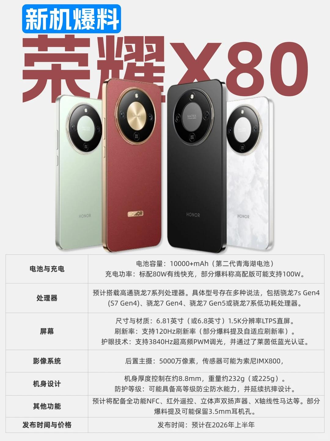 华为畅享90 Pro Max的销量 估计把友商看哭了 当然荣耀除外 确实没想到, 荣耀X70发布快一年之后,终于出现了一款可以跟自己掰掰手腕的机型。其实荣耀X70的产品策略就很简单,正面是1.5K护眼直屏,内置8300mAh青海湖电池,而且用上了荣耀鸿燕通信,屏幕、续航以及信号这三点做好,荣耀X70就已经成功了一大半 不过重头戏还在今年的荣耀X80上面,据说这手机的电池容量会来到10000mAh,芯片升级到骁龙7系,简单说就是拥有更强的AI算力,其他方面也都有升级,比如说后置主摄