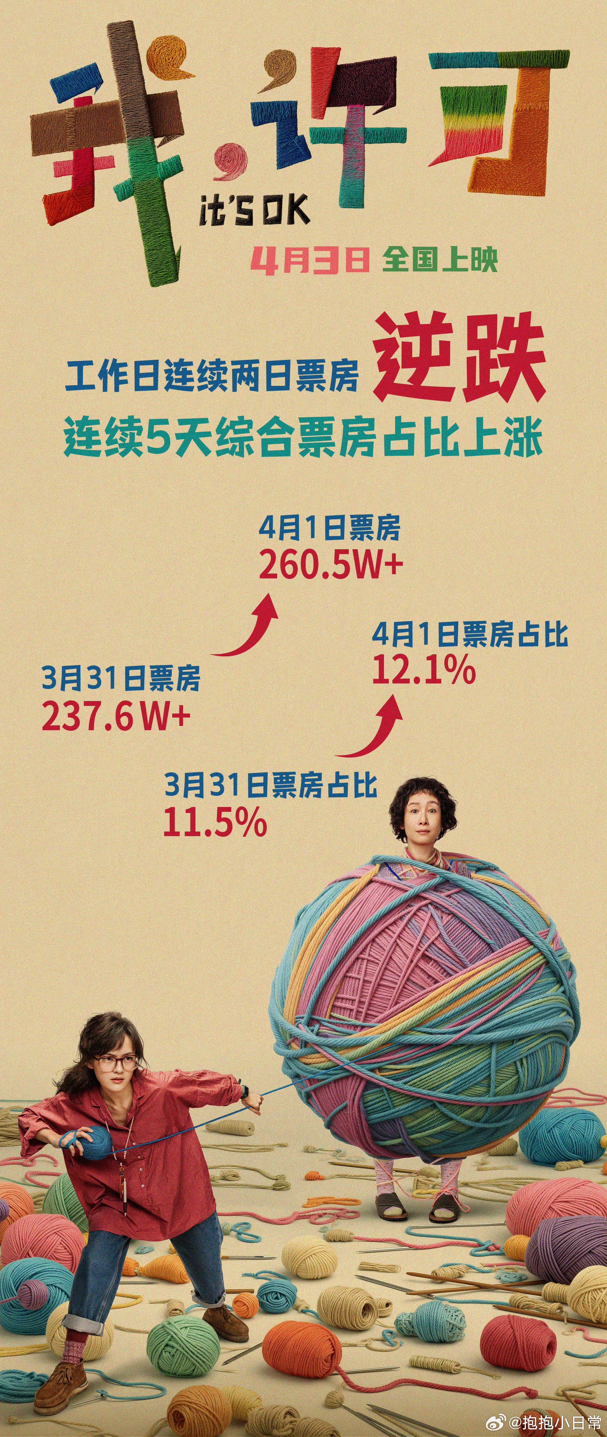 我许可创过去三年喜剧片点映评分纪录 《我,许可》点映9.7,创三年喜剧新高。游晓颖编剧的幽默台词与演员精湛表演,让观众笑出眼泪,4月3日正式上映。