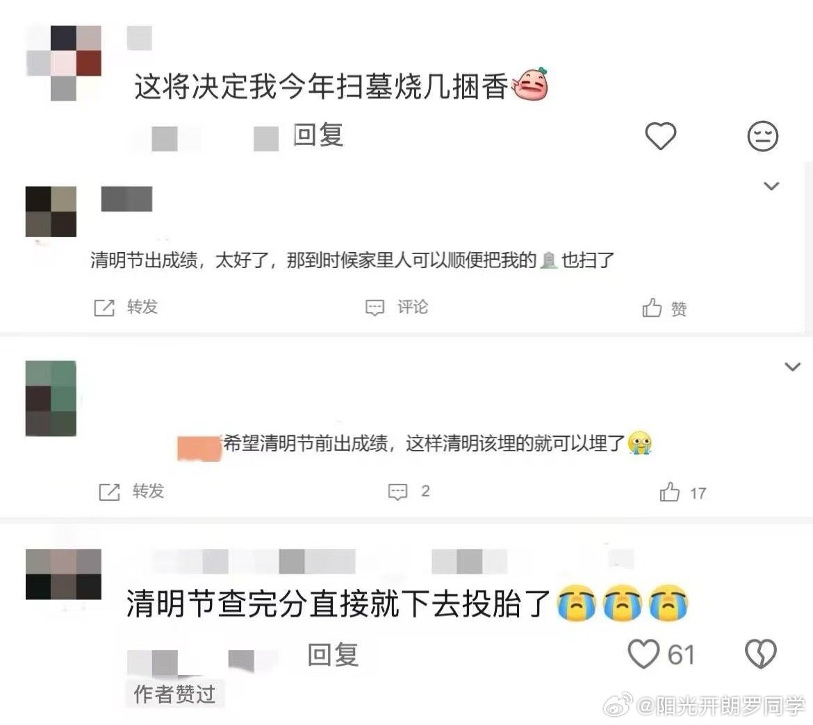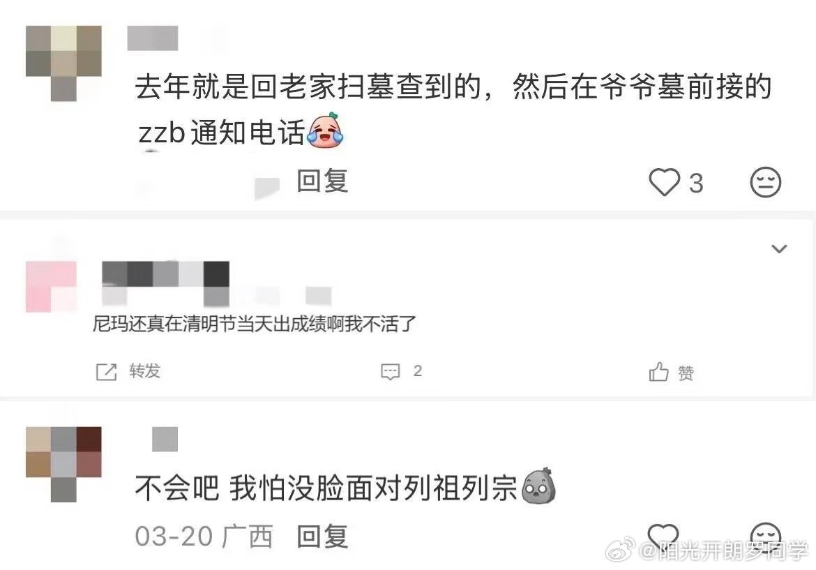 成绩赶清明出,这不是让我给老祖宗添堵嘛
