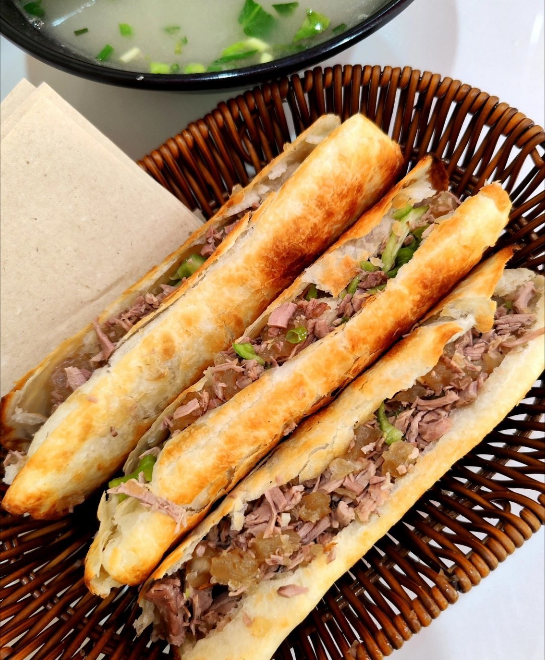 有人说生意做大了就得端着,我看未必。真牛的人,一顿驴肉火烧也能吃得有滋有味。火烧讲究现打现吃,趁热、酥脆、夹肉多——做生意不也这理儿吗?别整虚的,实实在在最香。这一顿吃完,比喝什么茅台都舒服。地气接了,人心也就近了。魏建军请于东来吃驴肉火烧