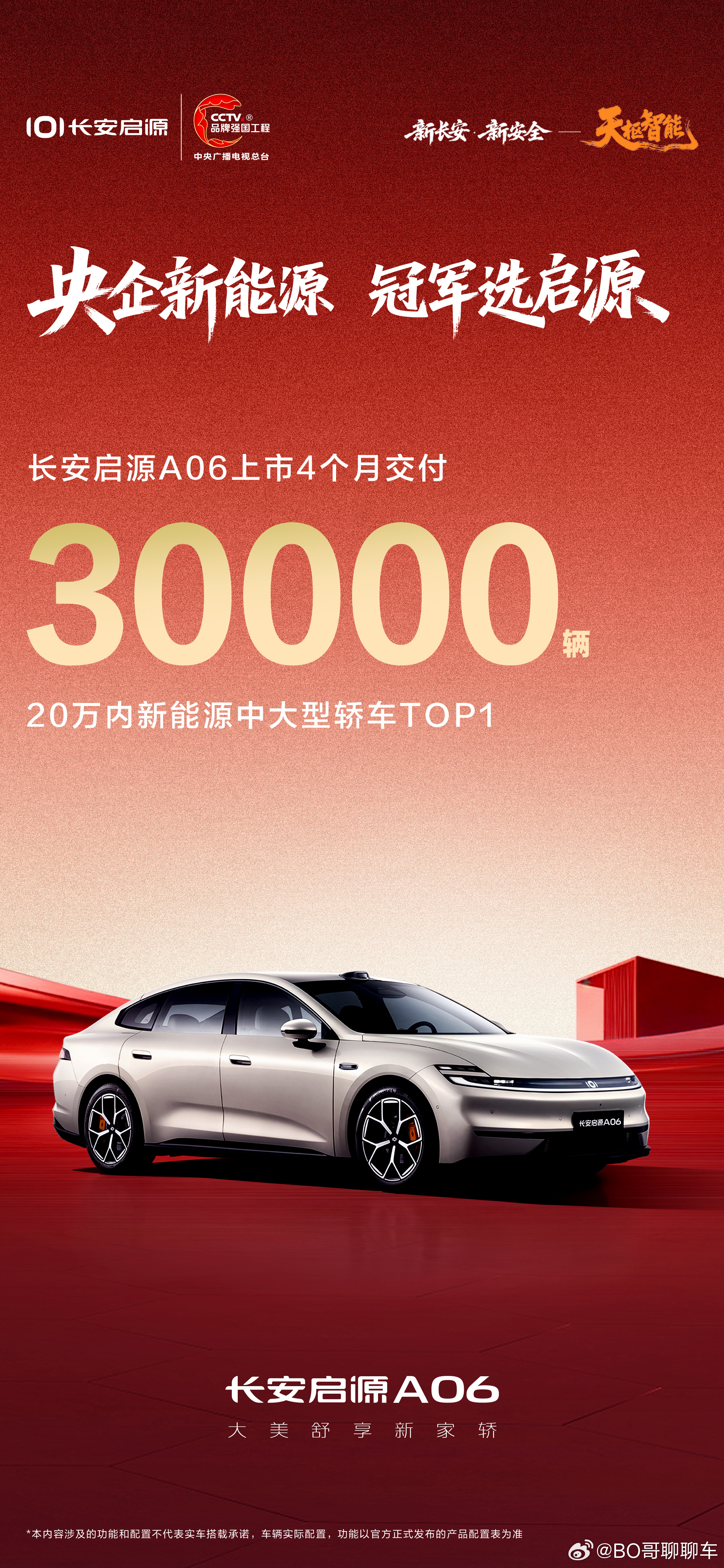 长安启源全新Q053月交付12600辆环比增长188.3%长安启源A06上市4个月交付3万辆长安启源Q07累计销量突破10万辆新央企新启源新速度,越级价值持续提升!央企新能源冠军选启源
