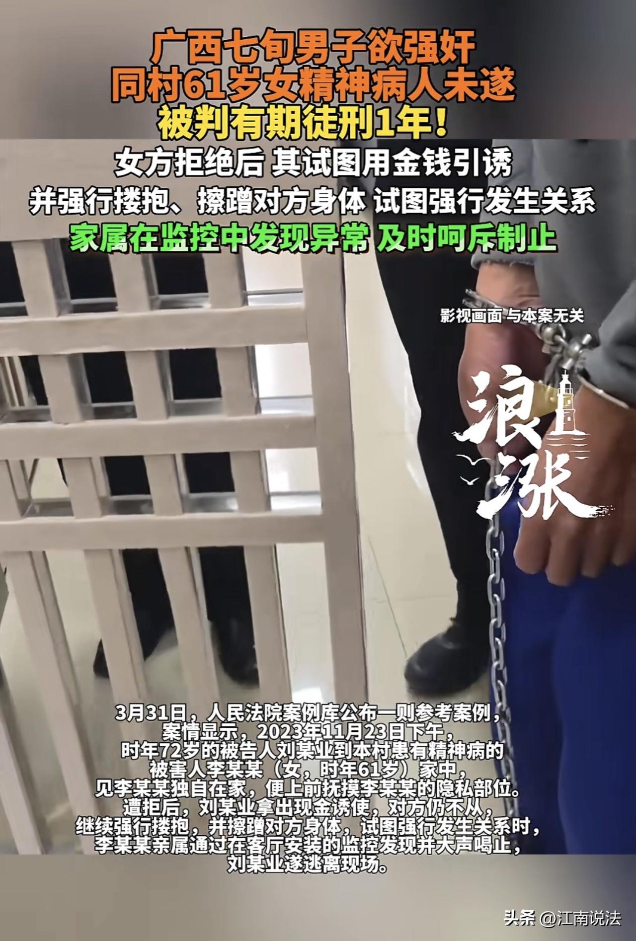 “太无耻!”广西,一72岁老汉,见61岁女精神病人独自在家,竟上去摸女子下体,遭反抗后老汉又拿钱引诱,并强行搂抱女子,擦蹭对方身体!就在老汉欲行不轨时,被女子家人发现,老汉慌忙逃走,家人立即报警,老头下场惨了!