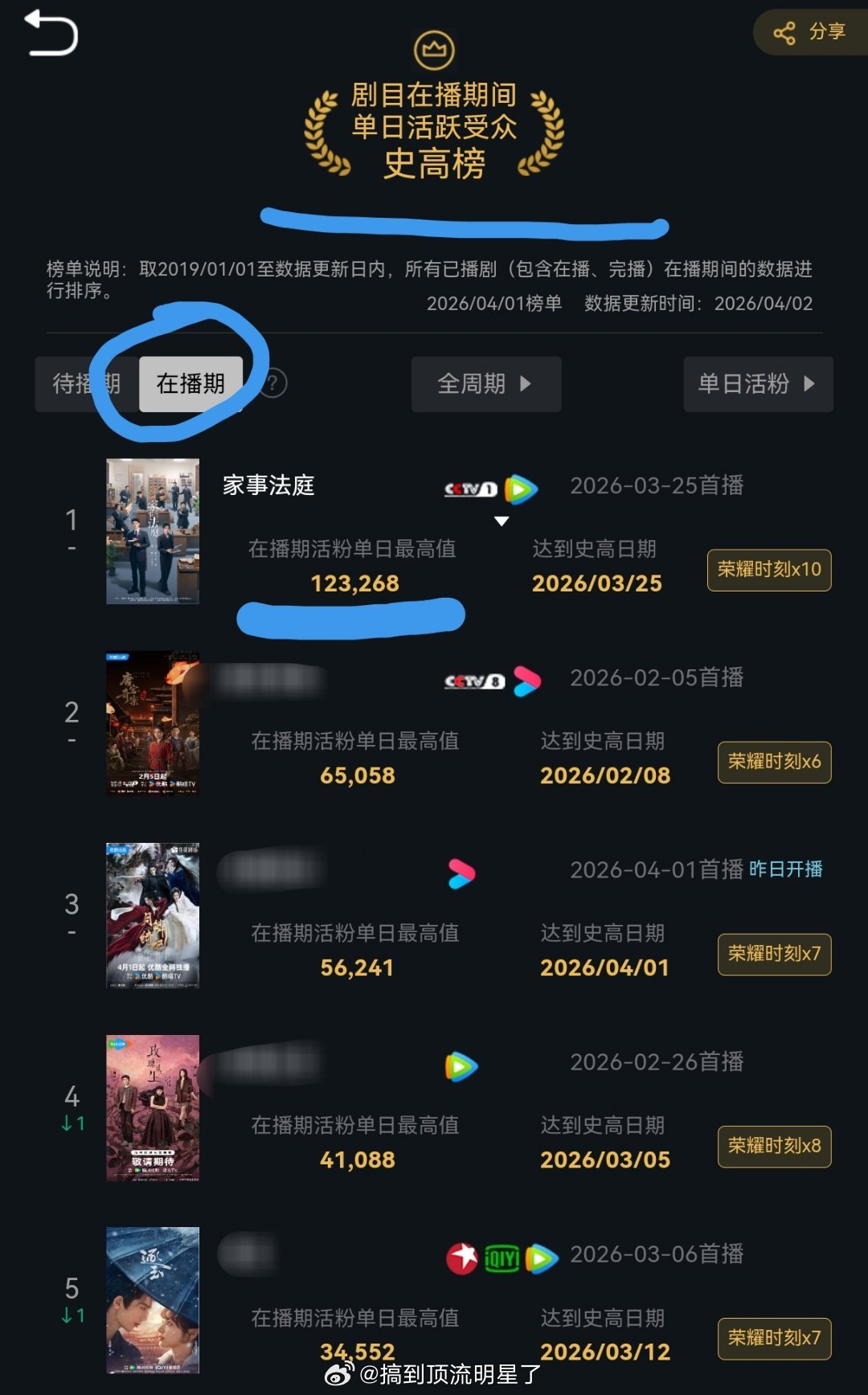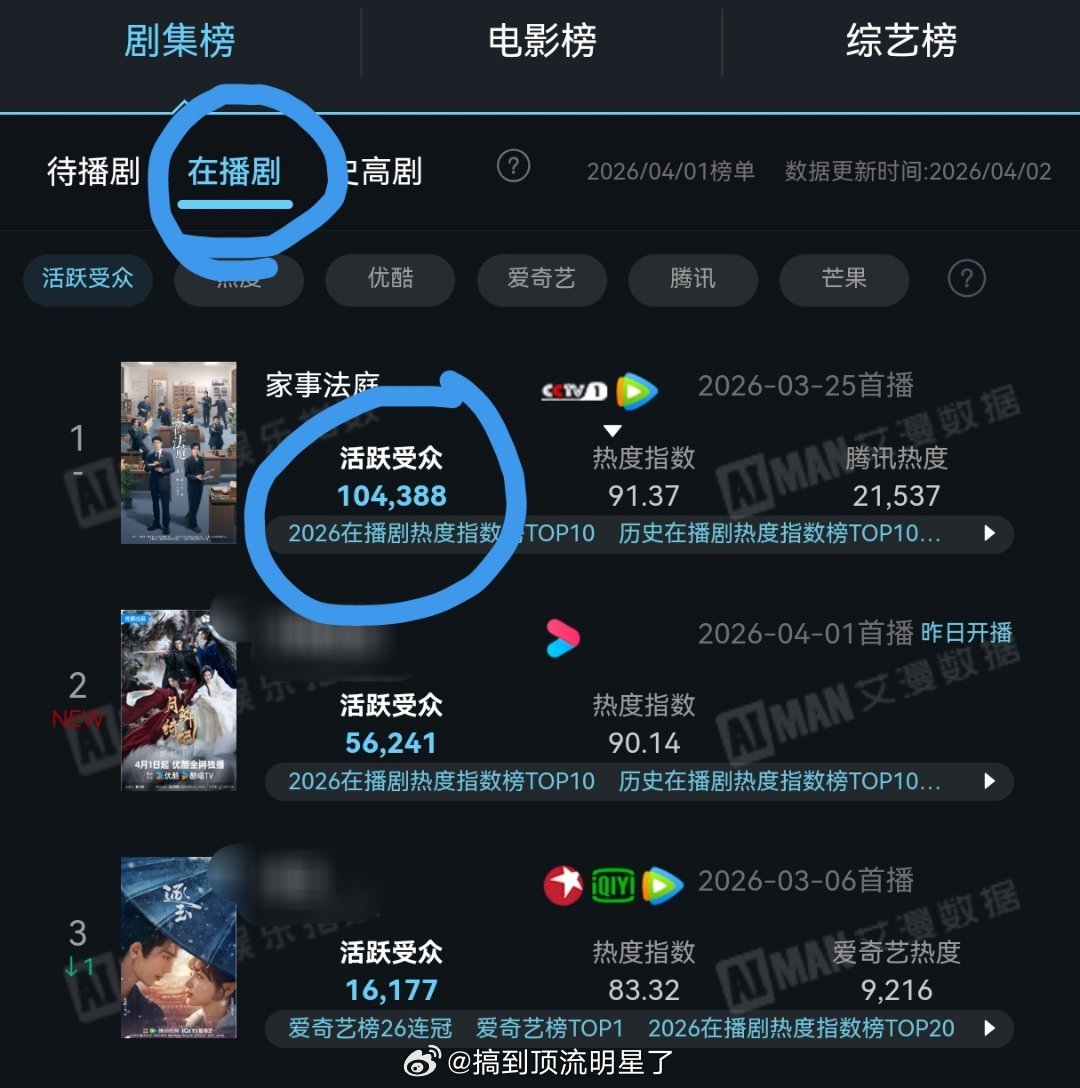恭喜龚俊《家事法庭》在播期活跃受众破12万创史高榜第一!待播期也破了10万活跃受众,拿下待播期史高榜第二,第一由龚俊的《凤舞九天》占领,直接包揽第一第二,龚俊的剧粉黏性也太牛了家事法庭凤舞九天