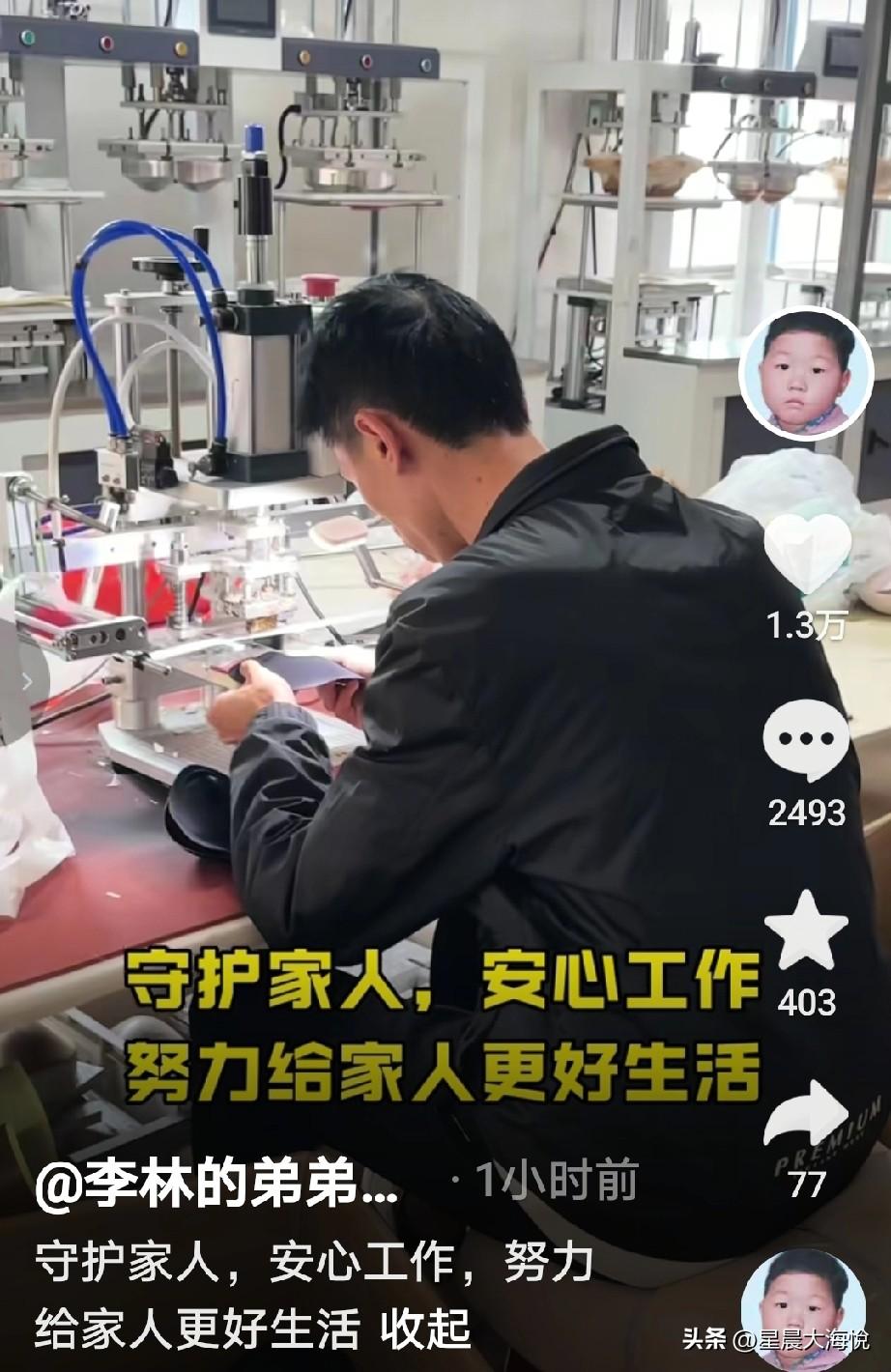 我有一种预感! 估计下次李林直播带货李鑫弟弟肯定会跟着一起的, 因为你看昨天李林带货一天李鑫都是全程陪伴的,弟弟虽然嘴上说不带货的但是姐姐李林不是也说过这样的话吗,现在怎么样啊,不也出来直播带货了嘛! 所以现在他天天更新视频,还起了一个小号, 这个视频也是我刚刷到的 视频里是李鑫在自家工厂工作的画面,还有带着孩子去做雾化的画面, 看样子李鑫现在很幸福,一边是养家给予的爱,一边又是亲姐姐。