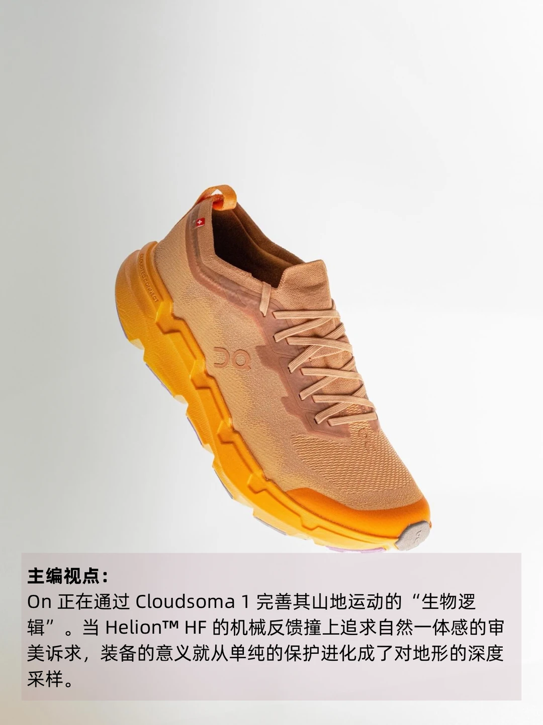 On 正在通过 Cloudsoma 1 完善其山地运动的“生物逻辑”。当 Helion™ HF 的机械反馈撞上追求自然一体感的审美诉求,装备的意义就从单纯的保护进化成了对地形的深度采样。这种将高性能指标无缝植入极简架构的能力,正是 On 在先锋户外市场持续扩张的底气。