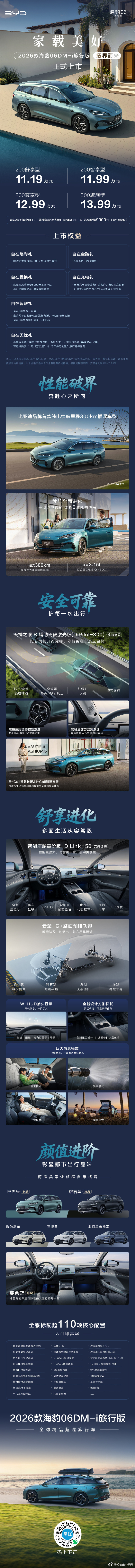 2026款海豹06GT/旅行版上市:11.19万起
