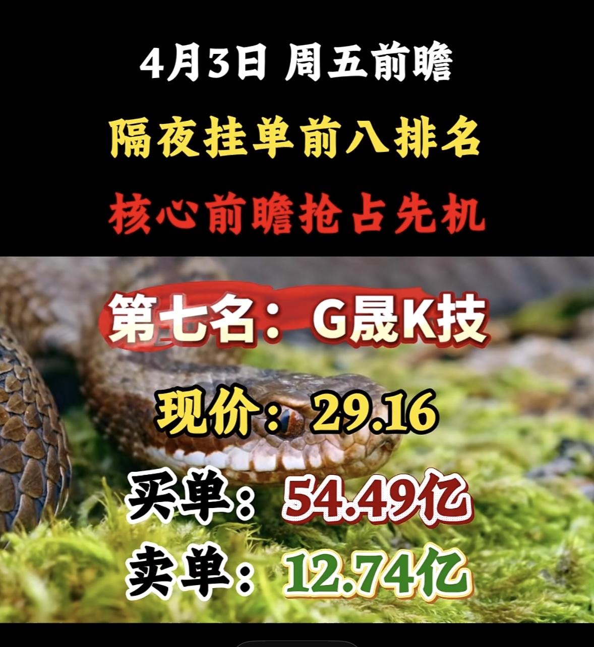 4月3日暗盘隔夜挂单排行榜揭晓 4月3日国晟科技现价29.16,来看看买卖单对