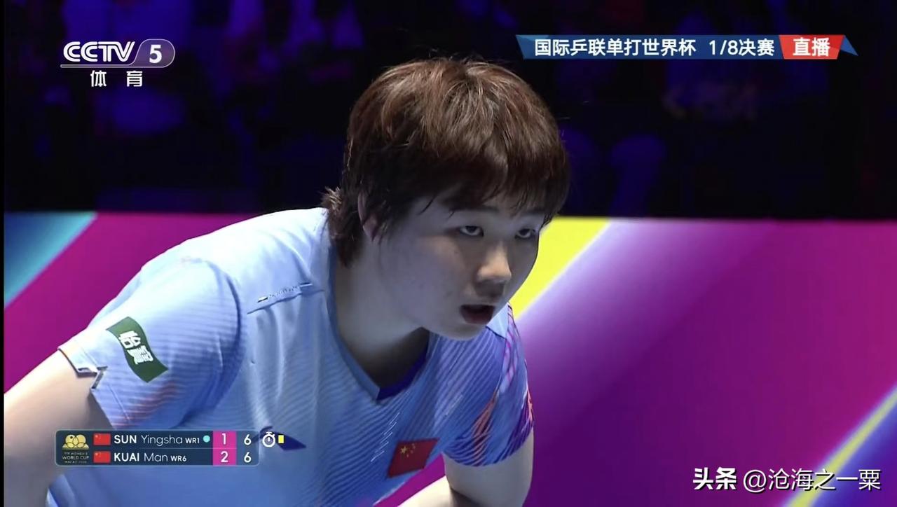 蒯曼真的难堪大任,这么的好的机会也把握不住,前面打的那么好,为什么就突然断线了?打孙颖莎就是大角度来回调动,不要怕失误输了也正常,总想比快与相持,那岂不正撞入孙下怀。