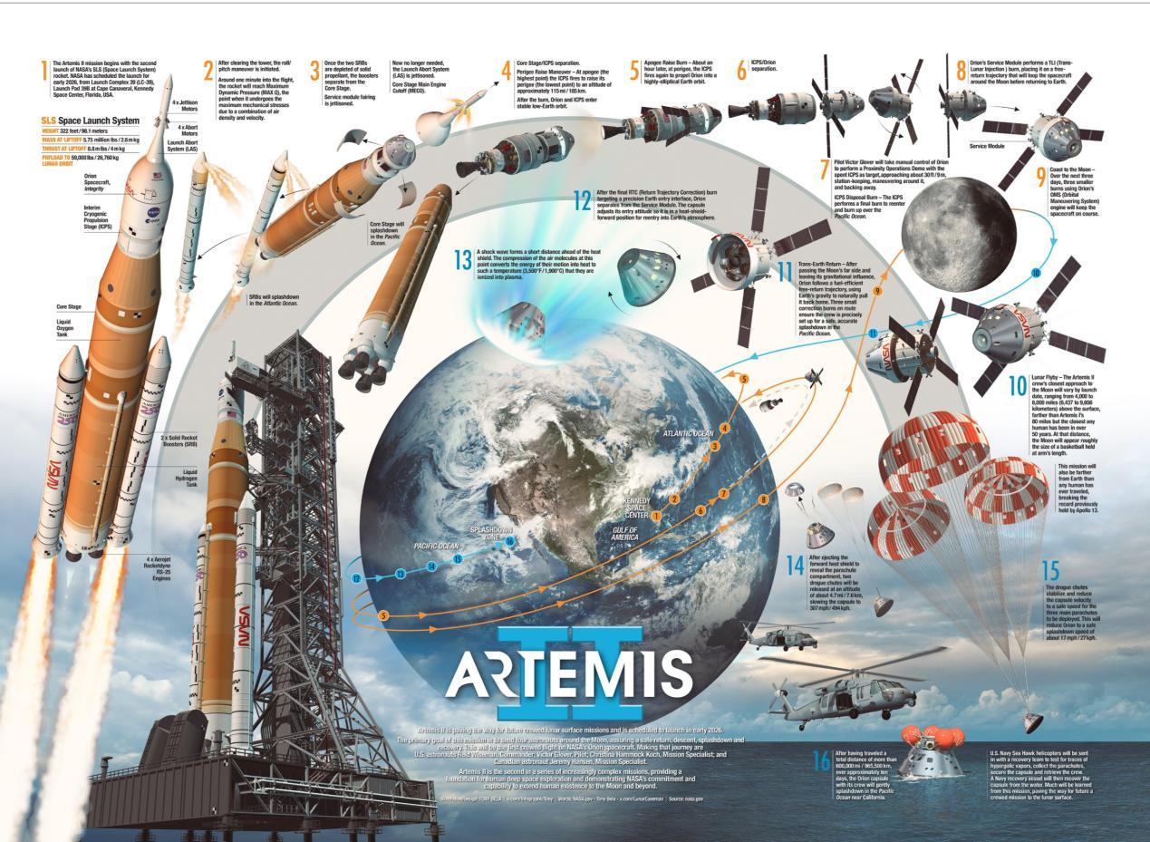 美国阿尔忒弥斯2号发射成功了,过程看了一遍,但是真不知道该夸还是该笑,为啥这么说呢?主要是发射的太“糙”。 夸的部分很简单,就是美国终于挽回了面子,虽然意义不大,但对美国来说,这是不能输的第一步,如果后续没问题,那么美国就是时隔50多年后,终于再次有美国人朝着月球飞去了。 为什么说是飞去,而不是绕月呢?是因为这个实验压根没有绕这个环节。 整个任务大概10天。火箭用的是SLS,先把猎户座飞船送到绕地球的轨道上,然后船和火箭分开。第二天,飞船自己点火,进入去月球的轨道,开始往那边飞。飞个四天左右,从月球背面擦过去,离月球表面最近的时候大概7600公里。注意,这次不走月球轨道,就是贴着边飞,利用月球的引力甩一下。 猎户座一路压根不减速,也不进入环月轨道,更别提登月验证了,最后直接以超过每小时四万公里的速度冲进大气层,掉进太平洋里,任务就算完成。 这条轨道,说白了就跟当年阿波罗13号出事以后用的那条应急返回轨道差不多,属于一条保底路线,全是奔着安全去的,总感觉差点意思。 而且哪个猎户座也没办法作为月球登陆器,再加上各种问题,总感觉美国这是为了发射而发射
