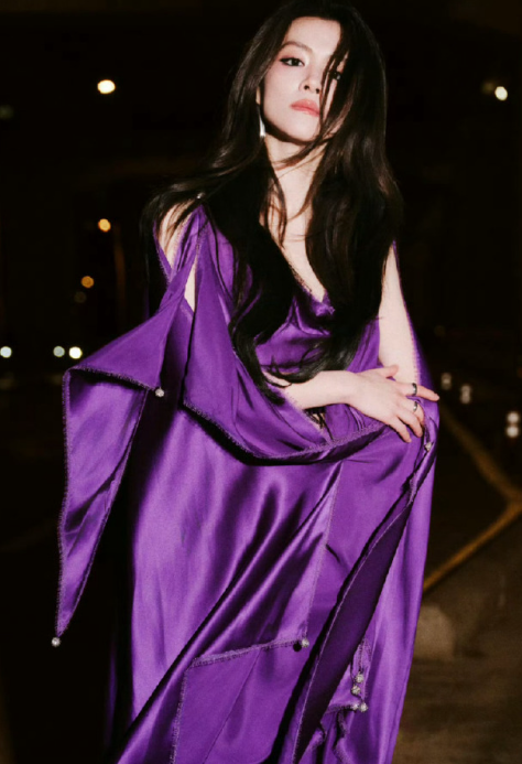 陈昊宇的紫色裙装,真的是别样的魅力!