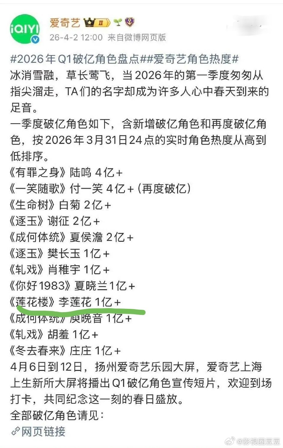 成毅《莲花楼》李莲花在桃一堆热度破亿角色里显得很突兀啊,唯一一个不是近半年来播出的角色,甚至还是三年前的
