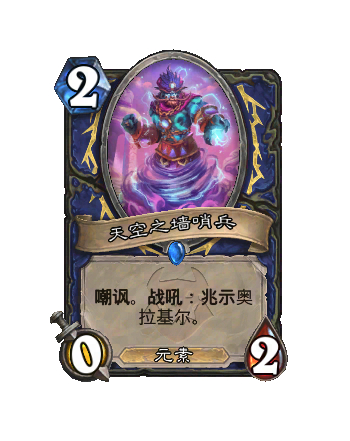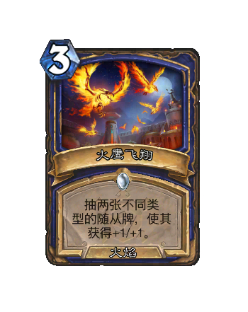 火鹰飞翔旧:抽两张不同类型的随从牌,使其获得+2/+2。新:抽两张不同类型的随从牌,使其获得+1/+1。