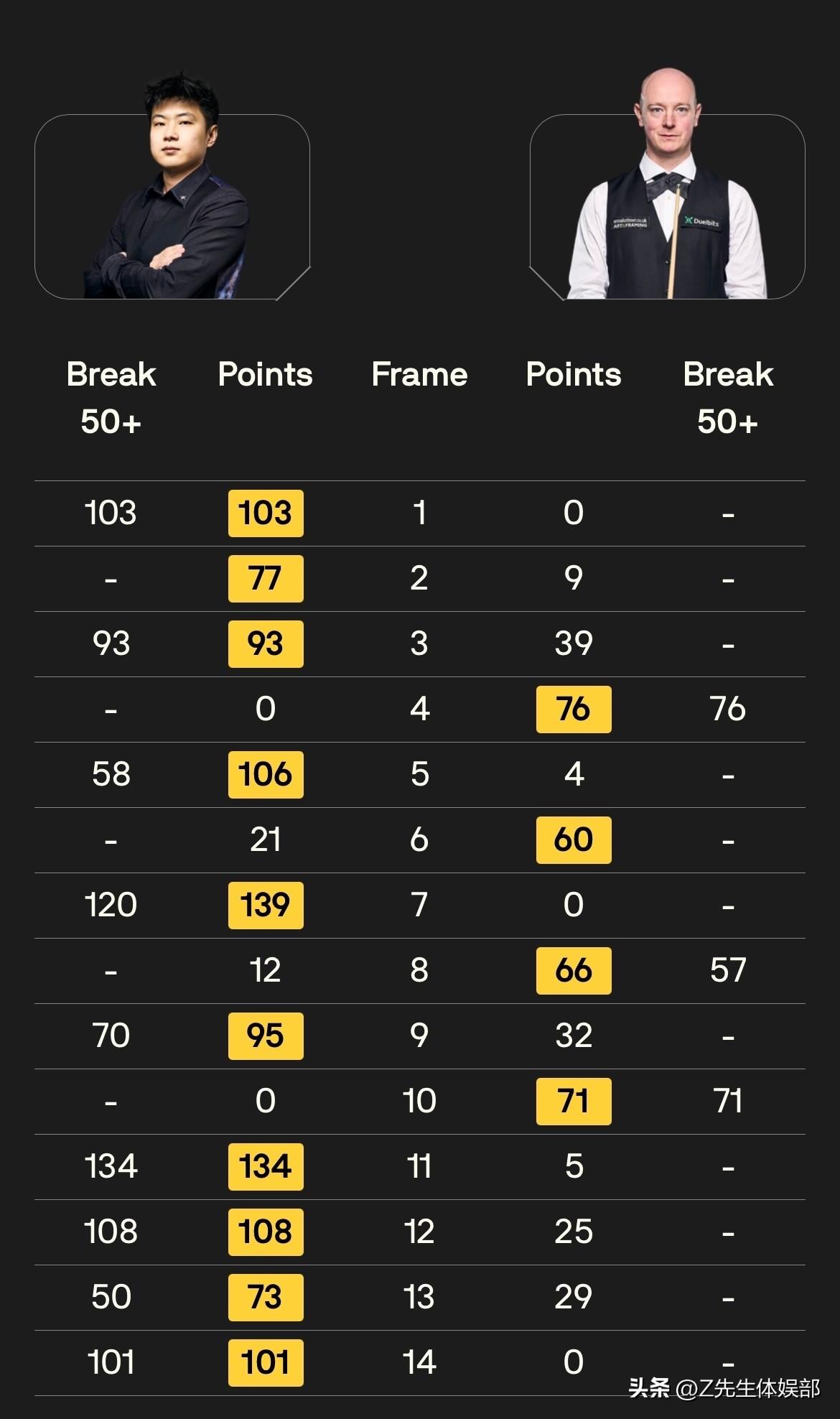 赵心童这场碾压性对决全场轰出5杆破百(职业生涯第233杆破百)单赛季第75杆破百,距离单赛季首位100杆即可额外获得10万磅奖励还差25杆!接下来半决赛对手是塞尔比vs希金斯的胜者!继续加油👏[打call]