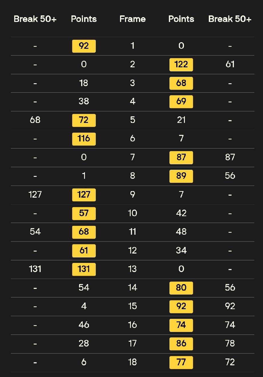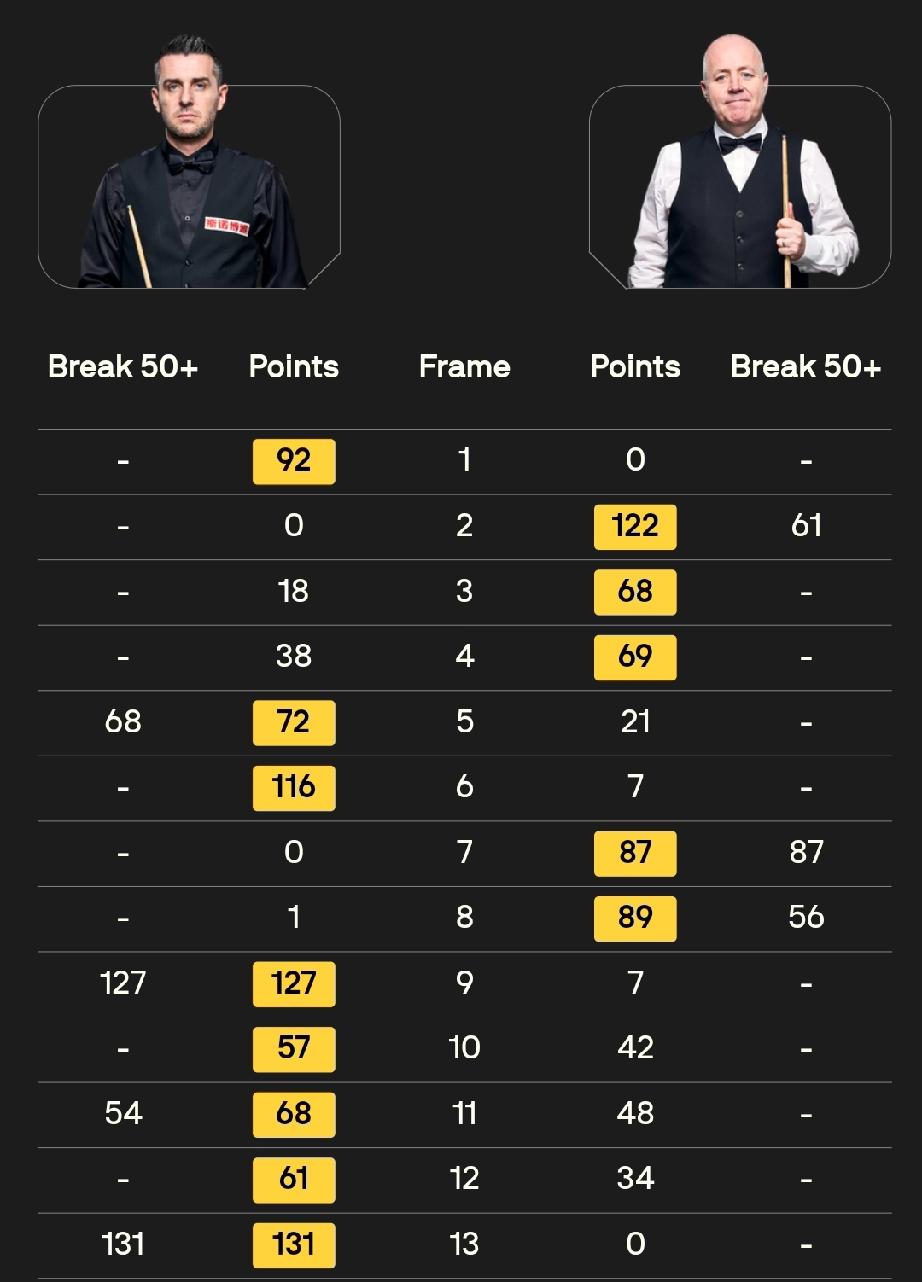 希金斯5-8落后追至10-8! 北京时间4月3日,斯诺克巡回锦标赛最后一场1/4决赛,卫冕冠军约翰·希金斯对阵马克·塞尔比。 第一阶段比赛结束,希金斯5-3领先塞尔比。 第二阶段比赛,塞尔比发威,打出两杆破百连赢五局,8-5领先希金斯! 随后,希金斯打出五杆50+,连赢五局,10-8逆转塞尔比,晋级四强。 半决赛对阵赵心童。