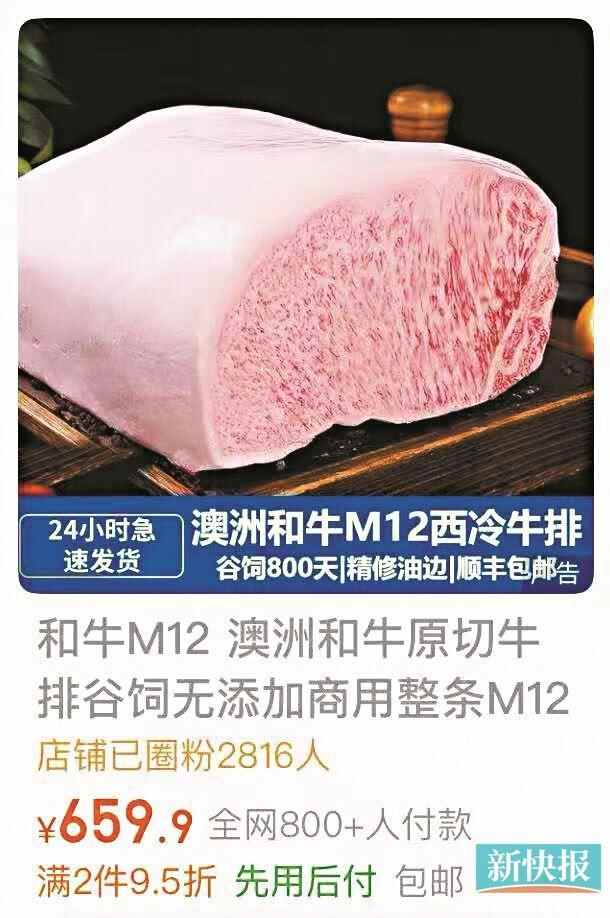 最为典型的,就是对日本和牛“A+数字”评级与澳洲牛肉“M+数字”评级体系的混淆与滥用。例如,尽管M9已是澳洲官方AUSMEAT大理石纹评分体系中的牛肉最高等级,但在部分电商平台上,仍频繁出现标注为M10甚至M12的“顶级和牛”,有的链接甚至卖了近千单。