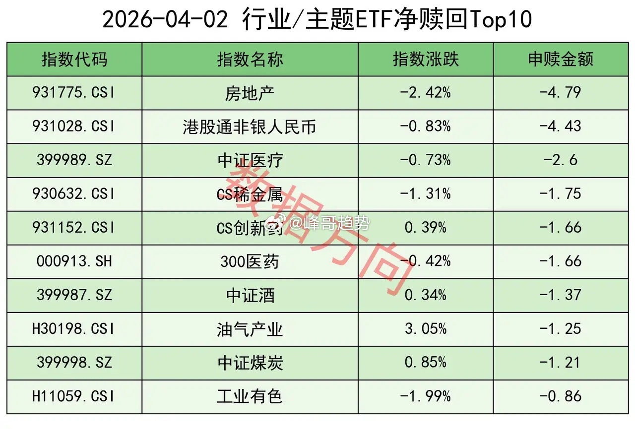 CS稀金属指数(-1.75亿)、油气产业指数(-1.25亿)、中证煤炭指数(-1.21亿)、工业有色指数(-0.86亿),一起进入赎回榜。