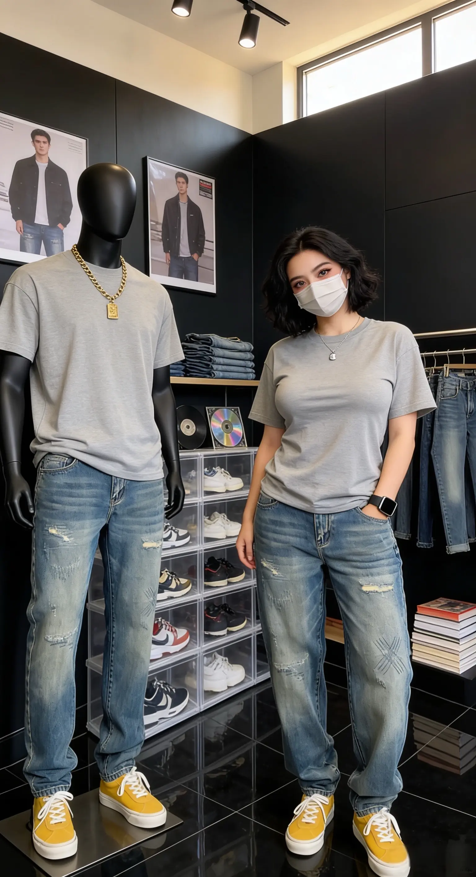 大码美式休闲痞帅复古破洞补丁牛仔裤男直筒宽松百搭锥形乞丐裤子 ✓