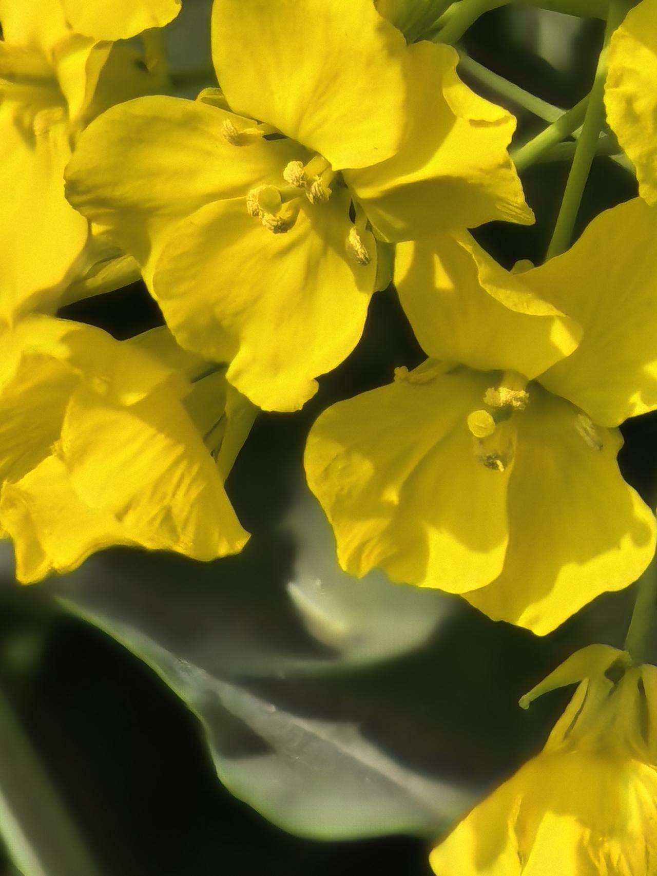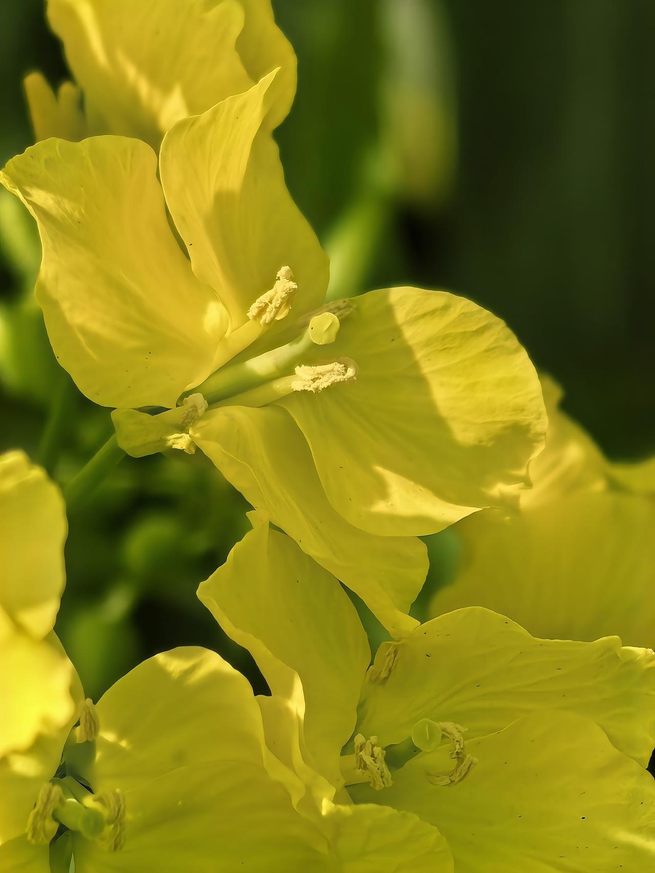 花朵结构:花瓣4枚,呈十字形排列,质地轻薄;雄蕊6枚(4长2短,四强雄蕊),为十字花科典型特征。