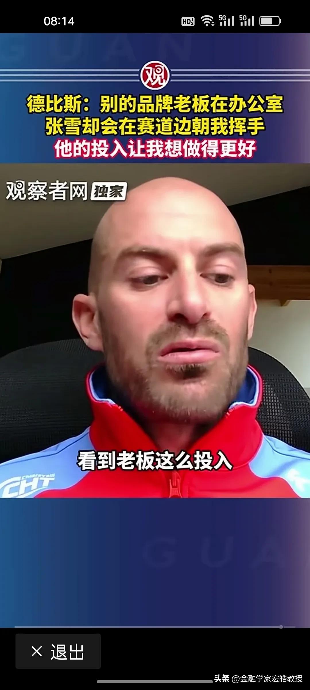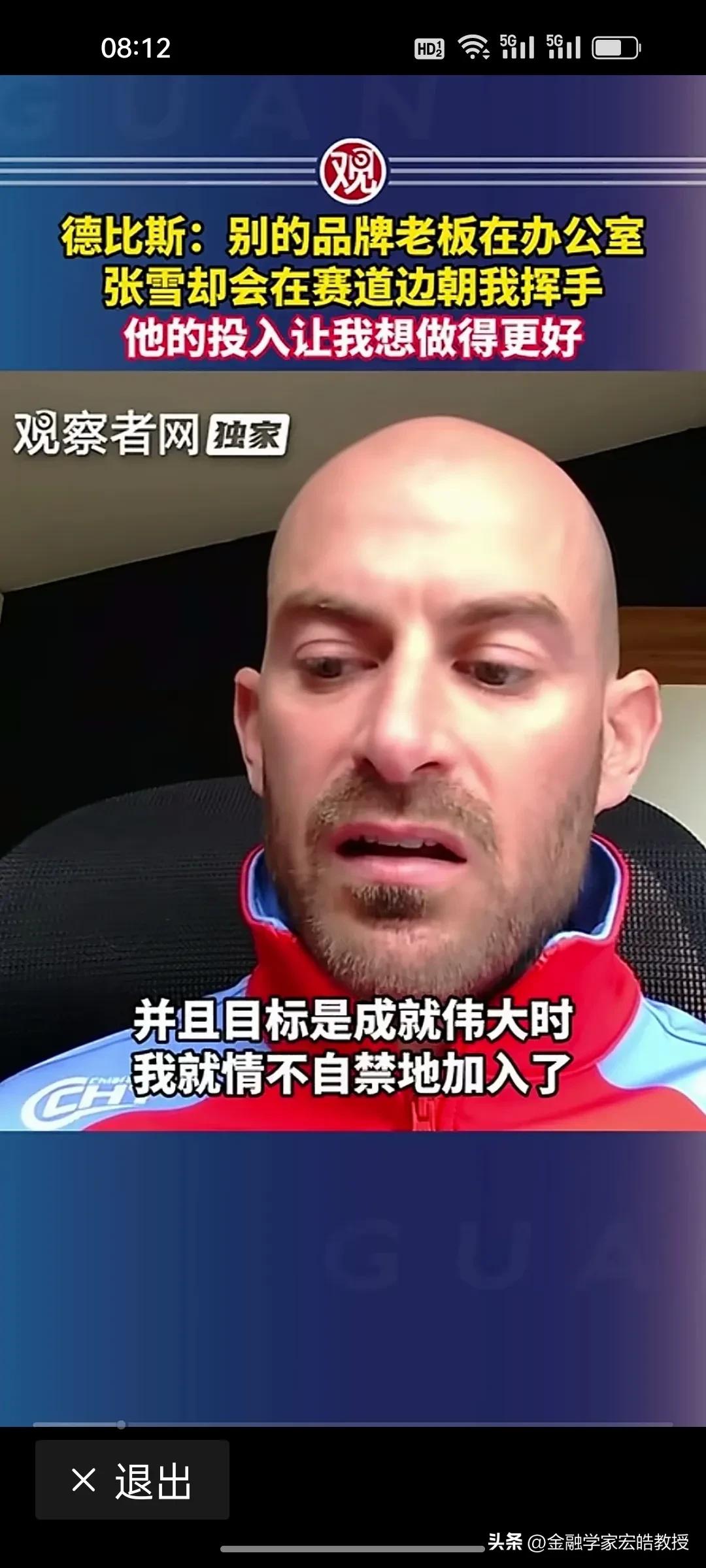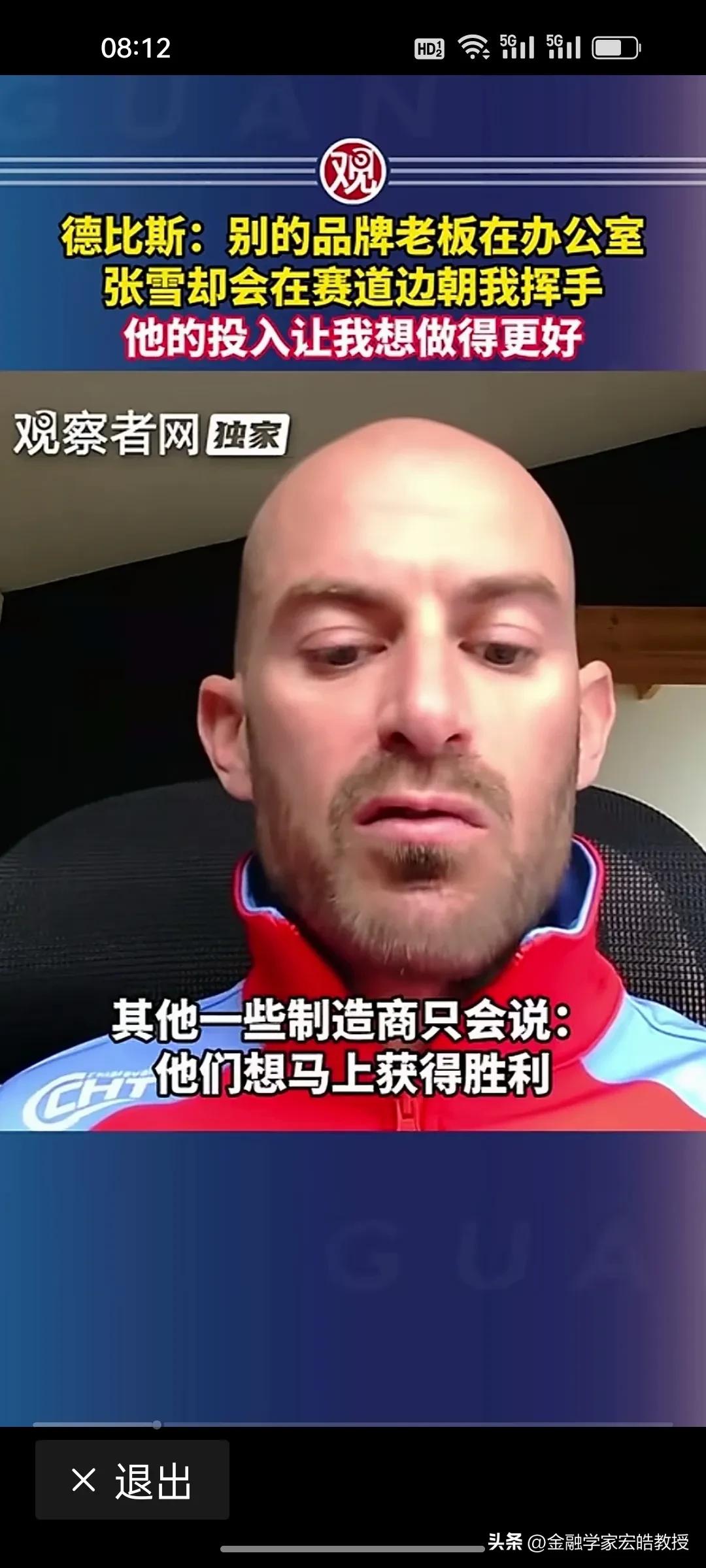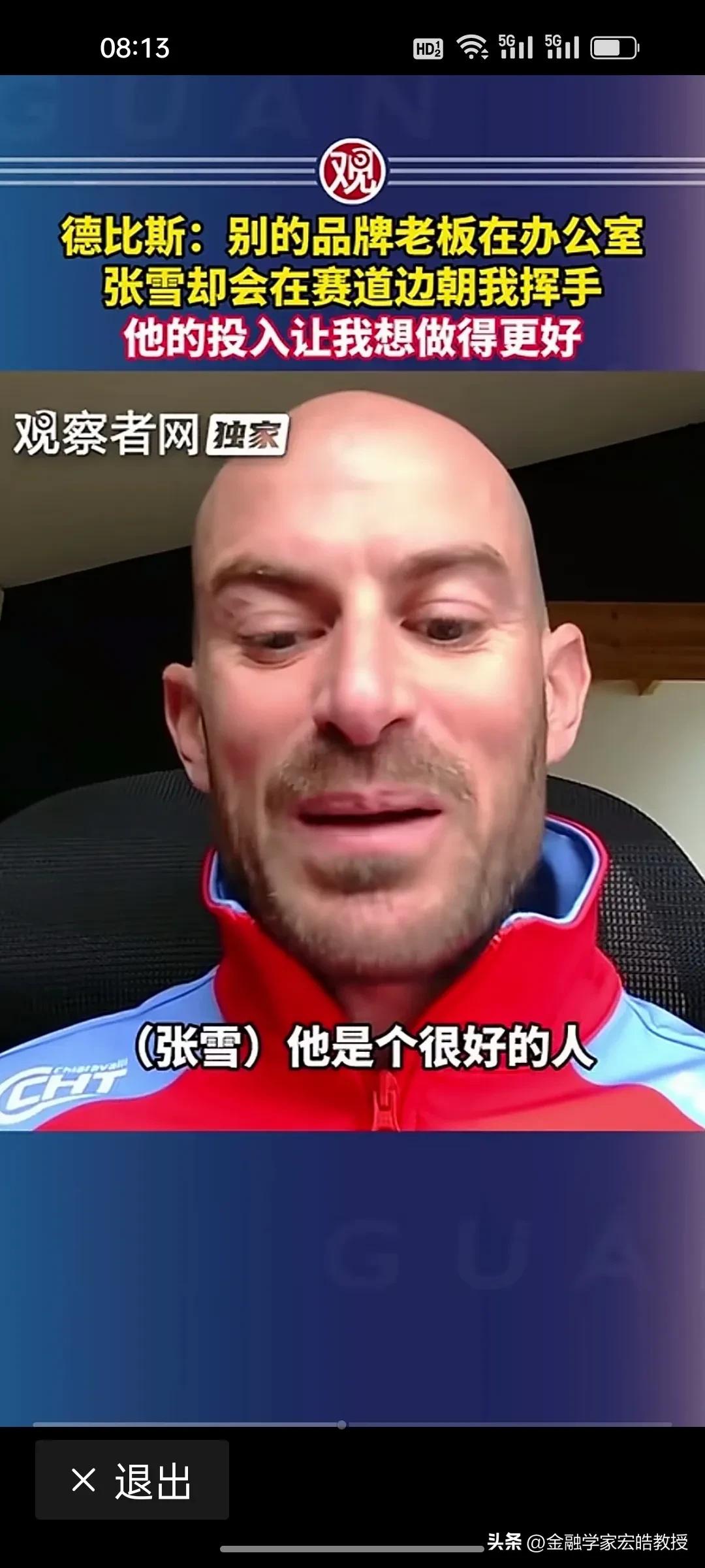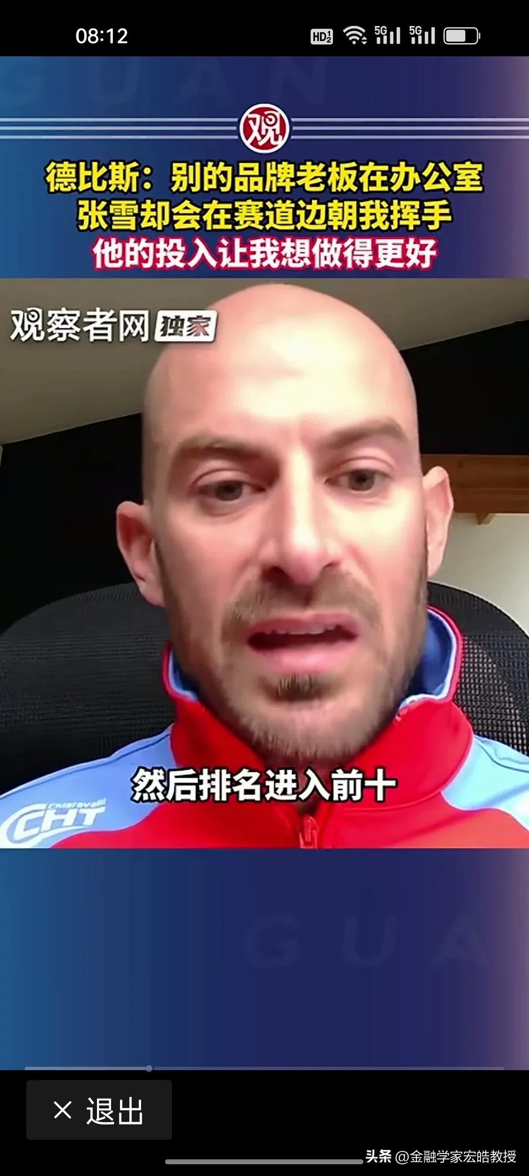 34岁的法国冠军车手德比斯在接受采访中全程不邀功,不说自己的车技有多高超,直言车好、团队好、老板更拼,还夸赞张雪全程守在赛道、不像其他老板,只待在办公室,张雪从不急功近利,就是循序渐进,不给车手压力,张雪一心为团队,句句都在成就老板,低调又通透。