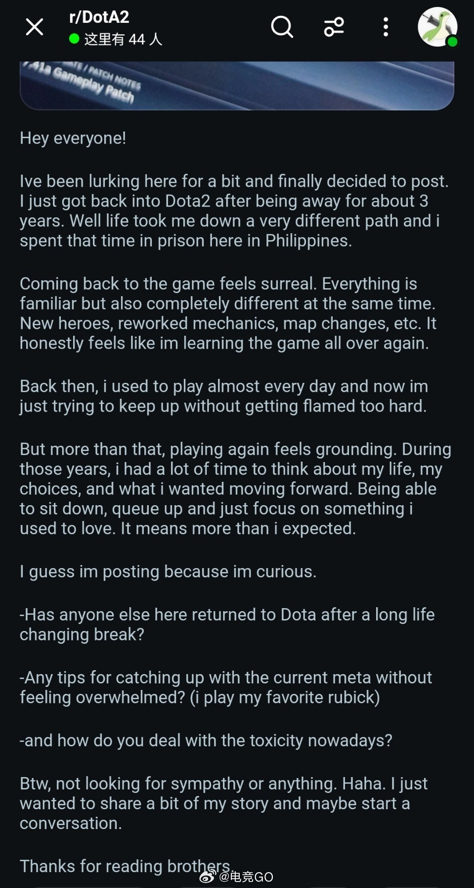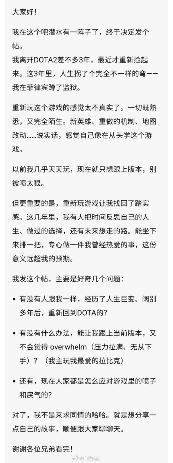 菲律宾刀友坐牢三年后回归说打一把DOTA的感觉真好网友评价:你是从一个牢到另一个地方坐牢啊dota2趣闻电子竞技DOTA2