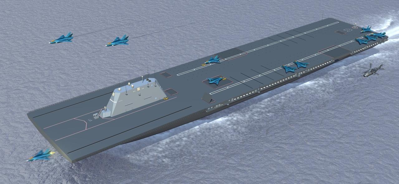 山东号航母上的歼-15T重型机,有一架正在滑跃起飞中,另外两架在甲板上等待任务中