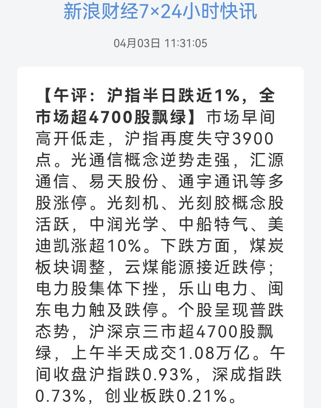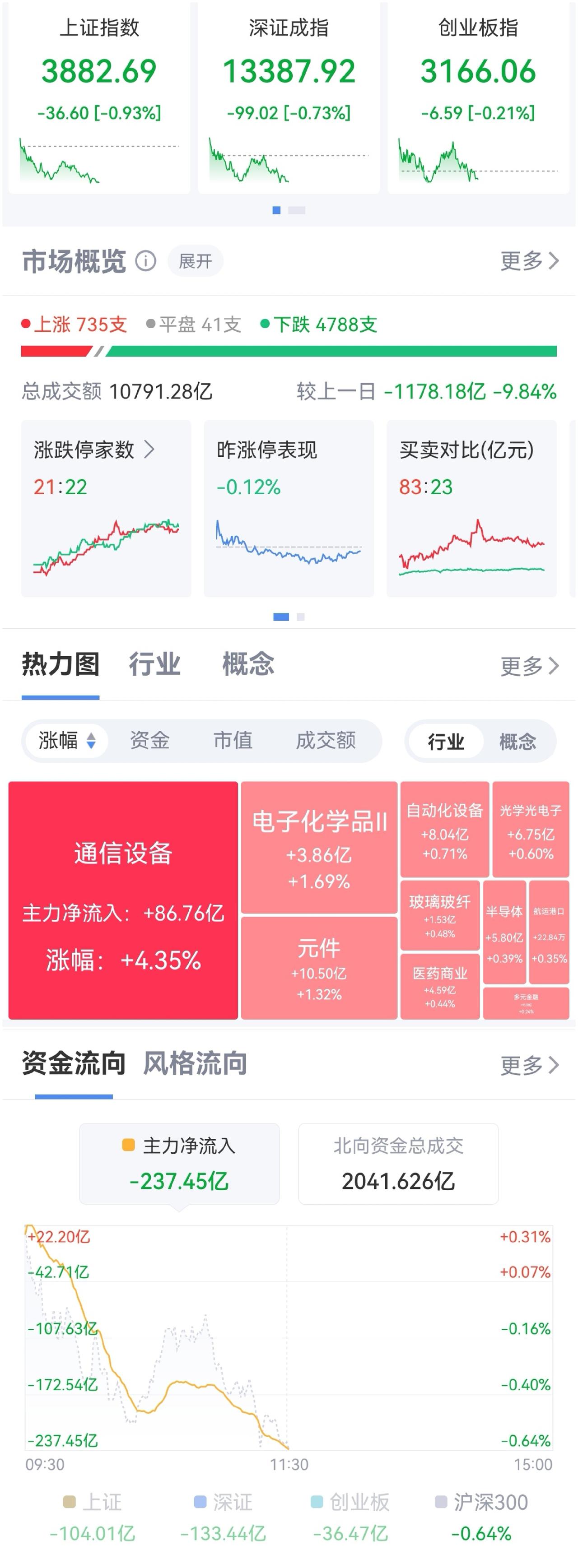 午盘:沪-0.93%、深-0.73%、创-0.21%。