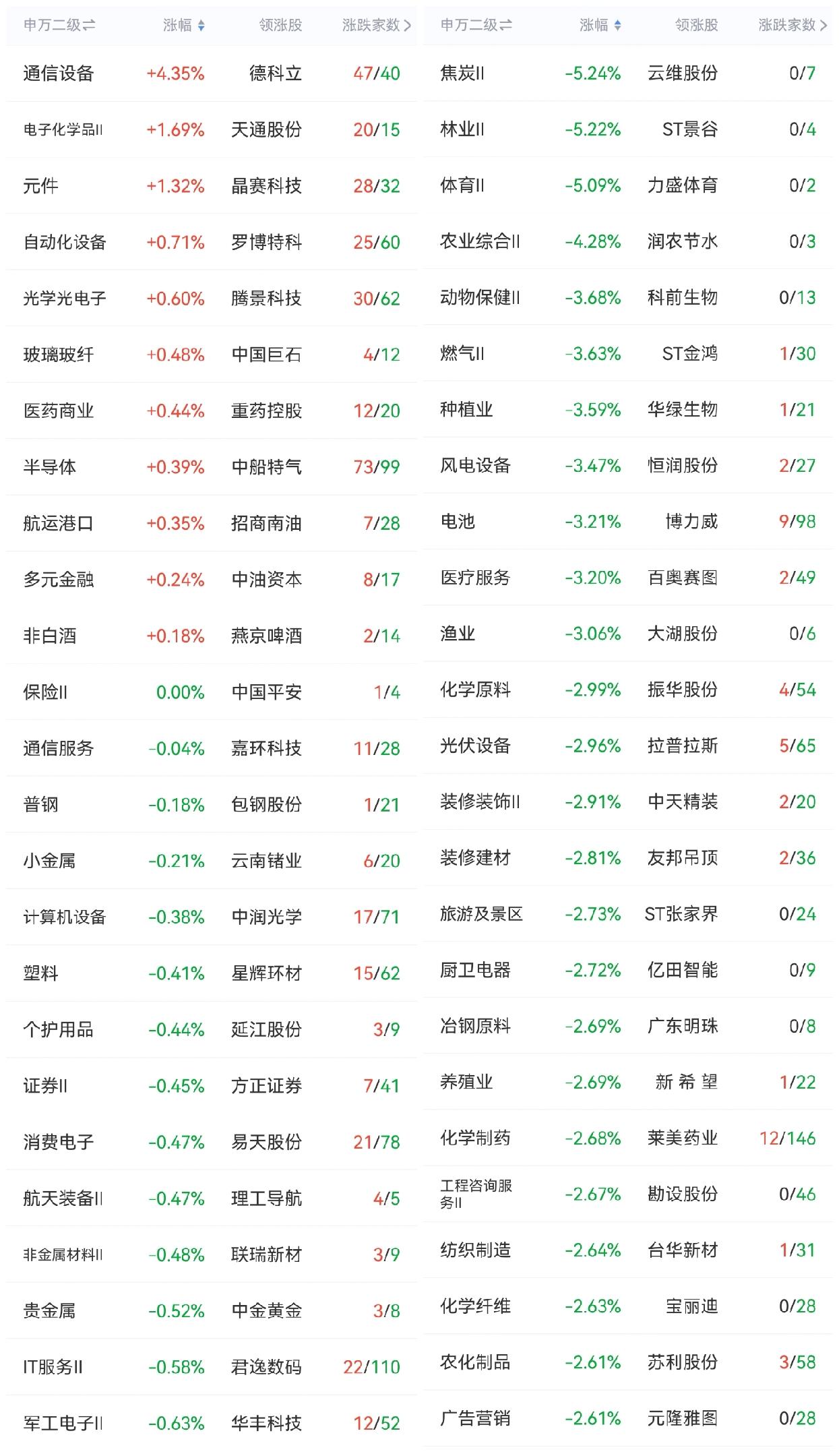 跌幅前列:煤炭电力、风光电、化工