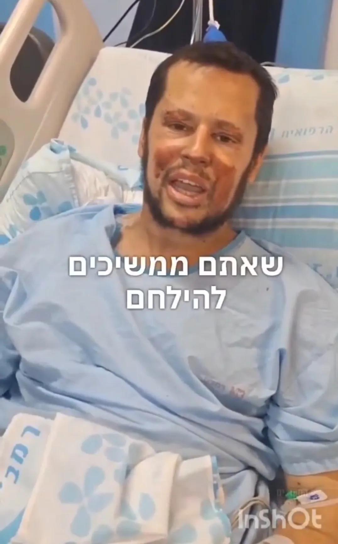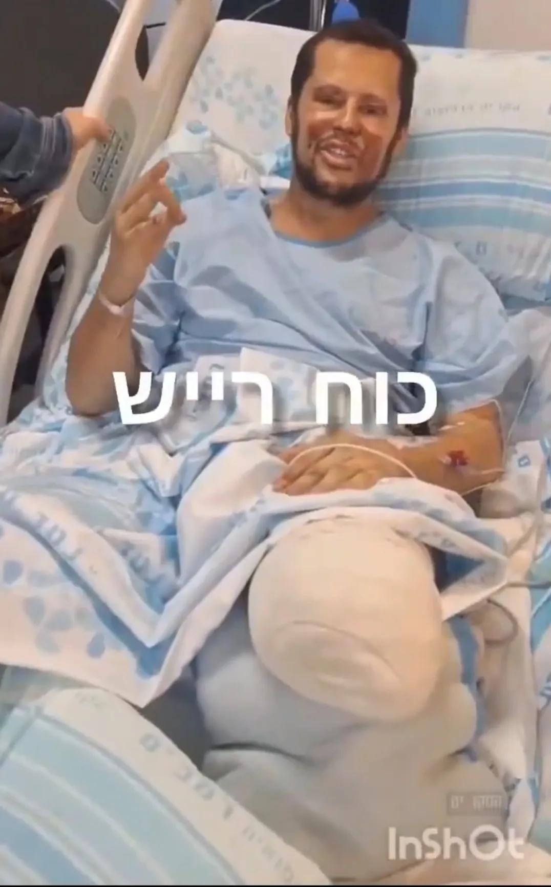 一名入侵黎巴嫩南部之后,在战斗中失去了一条腿的以军士兵躺在医院的病床上依然叫嚣,