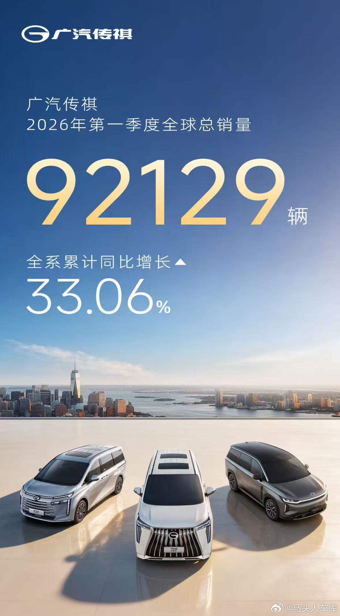 广汽传祺一季度销量破9万广汽传祺2026一季度全球销量92129辆,同比增33.06%,破9万的开门红,是BU改革后体系化调整的结果。全链路一体化运营,把用户需求放在首位,让品牌的市场响应更快。