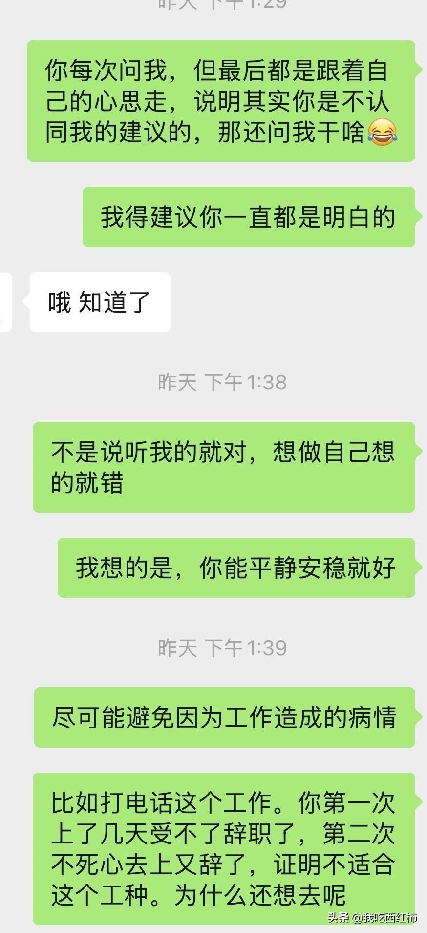 面对抑郁症家人怎么办 面对抑郁症家人到底怎么办 图中是我妹妹,我们都 30+已婚已育,她生一胎有抑郁倾向,生二胎两年后确诊,先在河北后在北京的医院就诊吃药。 她的小家经济条件不算好,她老公属于推一下动一下的人,从他们买房,装修,生病住院我每一步都出钱了7w+,从没说让他们还,一直说这个“你别放在心上,手头宽裕了想给就给,先过好自己的日子”(我爱人知道全过程),日常每个院月500 .100 的小钱也不断的借还,每个月都会来这么一次(我们还有一个小妹,也上班了,每个月都会找我们两个借几百周转,基本会还)。 经历过几件事之后,我发现,他们花钱没有规划,比如装修买电视,她问我买 75 寸的怎么样,我说你们客厅大小更适合 55 或 65 的,想买大点选 65,便宜点的选 55,当时她没回信息,但自己买了 75 的。好几次类似的事之后,借小钱的时候我就开始拒绝了。我说我们可以一起规划,但她拒绝。 至于她上班的事,没人逼她上班,我妈带大了她的两个孩子,特别是老二,她确诊后,我妈带着老二接送老大上学,做饭做家务。我小妹在老家工作,工作之余带孩子,带我妈放松一下。我爸妈是没有文化的农村父母,干事但不善表达,比如我妈叹气,我妹觉得是对她不上班有意见,但我妈妈可能就是觉得医生说让你多出去但你老在家闷着,或者你在家接孩子放学(两个都上学了),我去上班(我妈可能觉得,两个人都在家有点压抑)。但我妹妹总觉得我妈在逼她上班。其实她上不上班对于我们都行,但她不行,上班烦,在家又说得挣钱。 我们两个是异地,图中是我们这一周的聊天记录,她辞职了又不想在家,想去干电话销售,这个工作她尝试了两次都是干几天烦了辞职了,我建议她不做脑力劳动,试试体力劳动,她每次回个“o”,就没下文了,但辞职后再找工作继续问也继续不听。 最后一点背景:我们农村家庭,姐妹三个,我是小镇做题家,走出了农村,我小妹也大学毕业在县里找了工作,抑郁的是二妹,她初中退学了(家里不同意,觉得你那么小不上学干啥去,但她怎么都不去了,觉得学不会)。她要结婚的时候,我爸打听了对方家里,觉得她婆婆不行,不同意,但她就是要结婚,结果就是他们成家到现在公婆完美隐身。 她现在一给我发信息我第一反应是烦和怕,但我又讨厌自己有这样的心思,觉得她是你亲妹妹,生病了,你怎么能这么想呢?但我真的好累。我们是做的不够还是不对?需要怎么做?亲们可以建议我,不要骂我,我也焦虑。