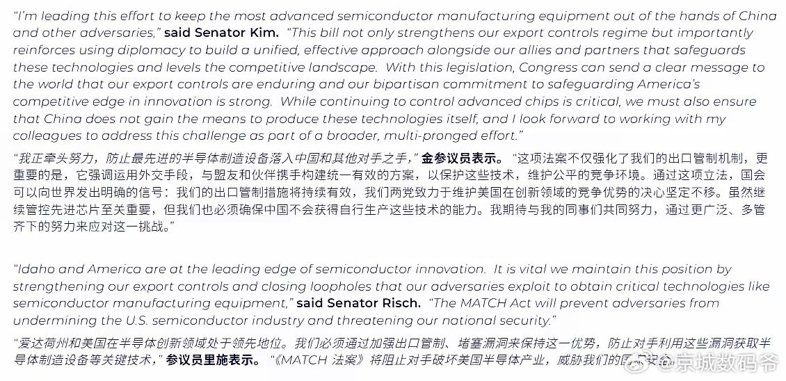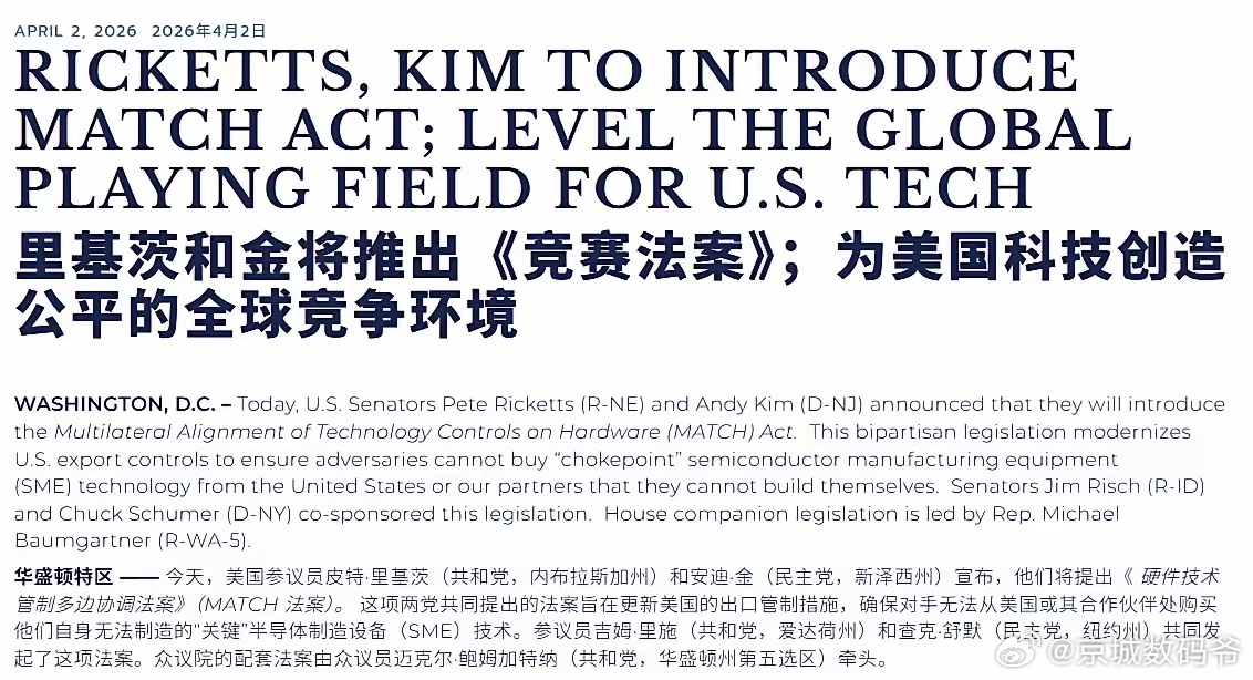美国国会抛出了史上最严的对华芯片管控法案(MATCH法案),这是一个两党都支持的