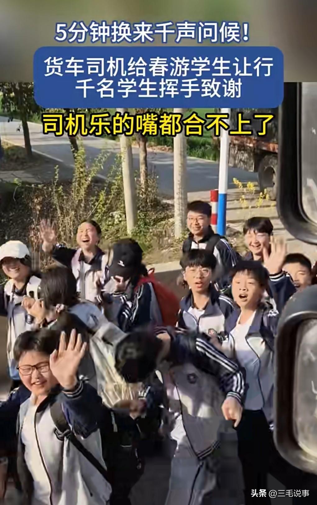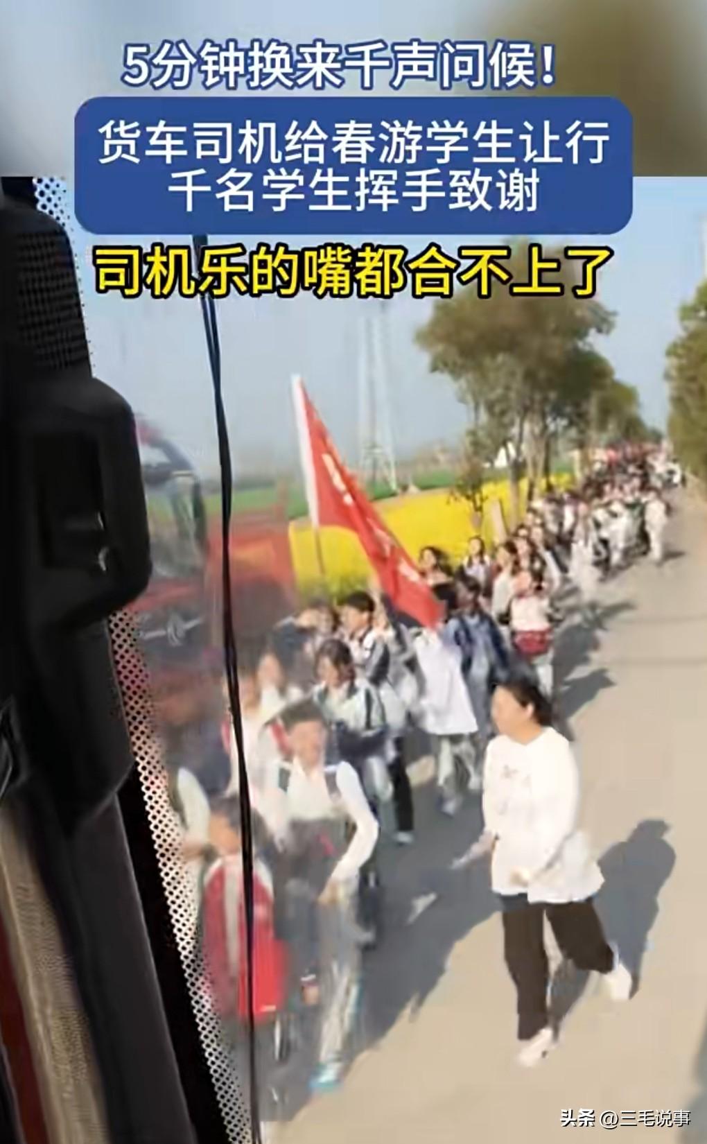 近日,司机让行5分钟获上千名学生打招呼。