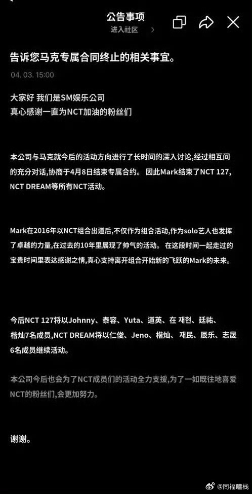 NCTDREAM也没逃过七人男团魔咒七人男团又少一个kpop七人男团魔咒又生效了🤧🤧sm发布公告李马克到期不续约退出not dream李马克退团手写信