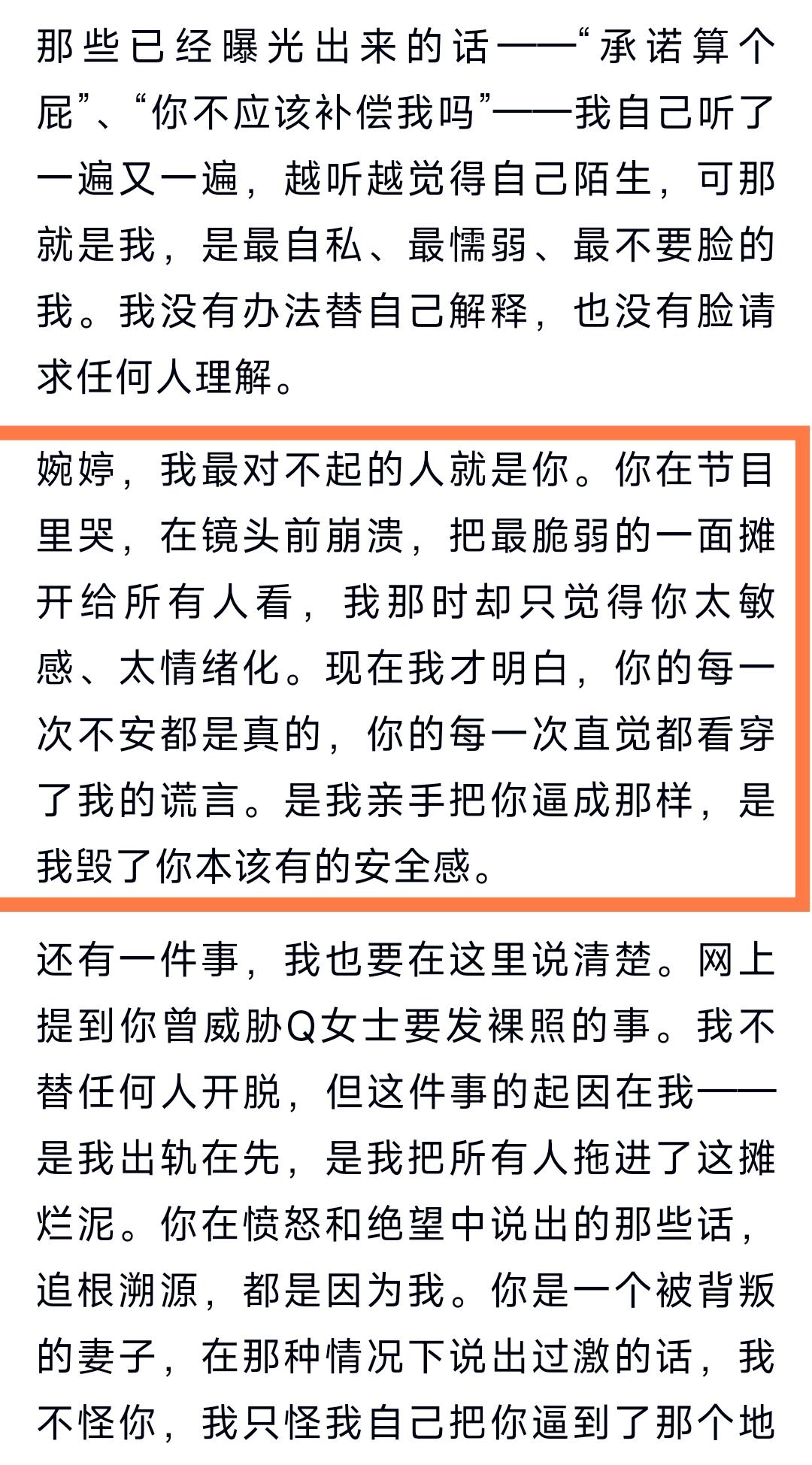 男人心里的白月光,是现任一辈子的“刑”。 以前看综艺,我也觉得张婉婷嘴巴太毒、太强势, 动不动就当众骂宋宁峰,说话不留情面, 甚至让人觉得她情绪不稳定、性格有问题。 可直到宋宁峰出轨、心里始终装着齐溪这些事慢慢浮出水面, 我才突然看懂: 她的嘴有多狠,她的心就有多痛。 她不是天生爱骂人, 是她在婚姻里,从来没得到过踏实的偏爱。 婆婆病重,齐溪能以“女儿”身份出现; 朋友聊天,他张口闭口都是“以前跟齐溪怎样怎样”; 二婚闪婚生子,她以为是新开始, 结果只是活在了别人的旧故事里。 她闹、她吵、她说话刻薄, 本质都是在拼命问一句: 我到底算不算你的独一无二? 宋宁峰最伤人的,从来不是吵架, 而是他永远沉默、永远敷衍、永远活在过去。 他把温柔体面都给了前妻, 把冷暴力和委屈全留给了她。 现在他自己终于发长文承认: “你的每一次不安都是真的,你的每一次直觉都看穿了我的谎言。是我亲手把你逼成那样的,是我毁了你本该有的安全感。” 真的, 慢慢你就会明白: 没有女人会无缘无故变刻薄、变恶毒、变歇斯底里。 那些看起来很强势、嘴巴很毒的女人, 大多是在婚姻里被冷落、被忽视、被对比逼出来的。 她不是疯,她是绝望。 她不是坏,她是太想被爱。
