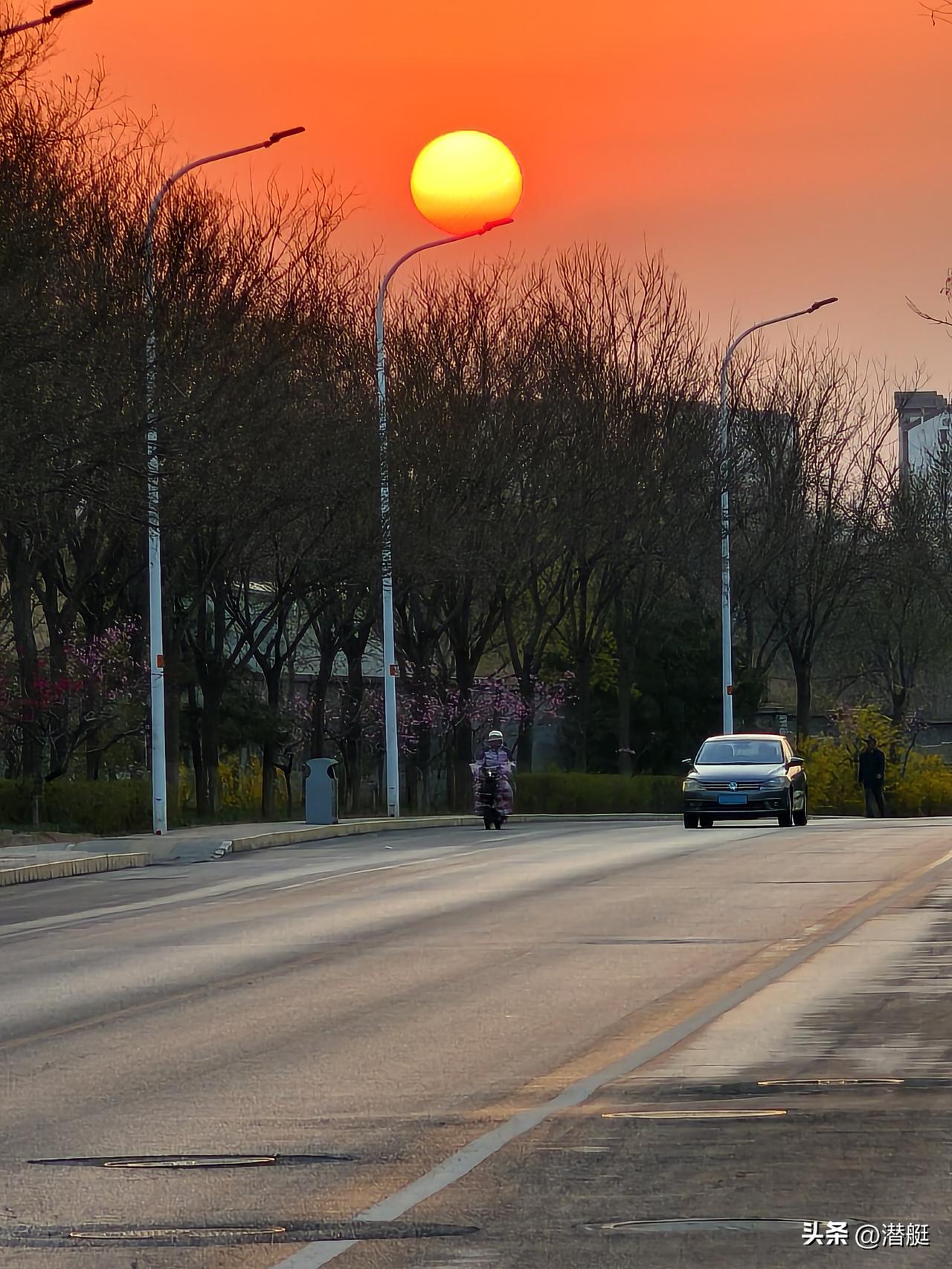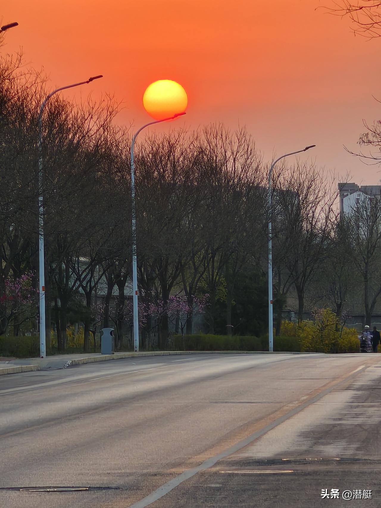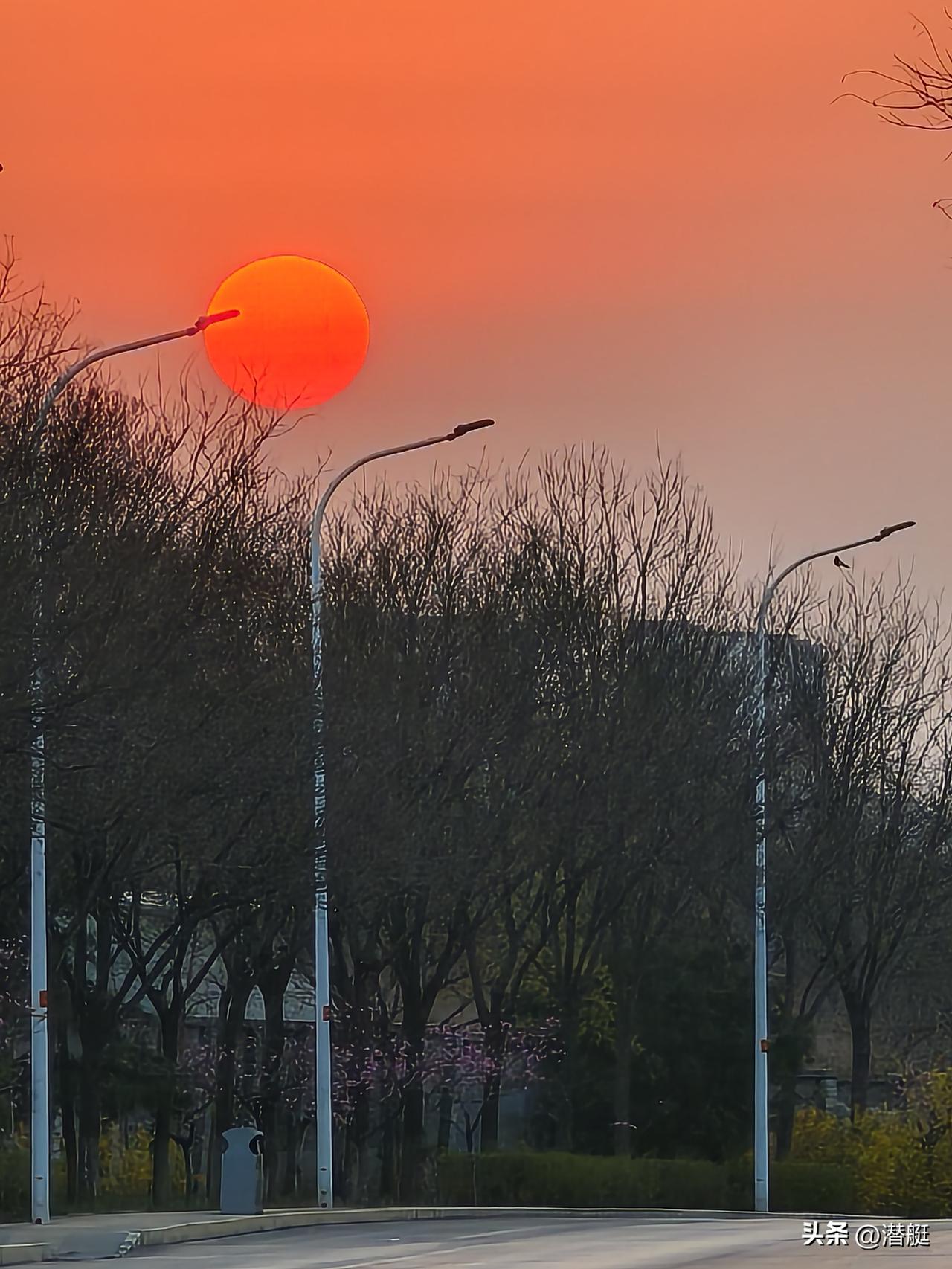 分享随手拍美丽风景日出东方红似火!晨起太阳刚刚升出,那颜色就是中国红。让我想起那