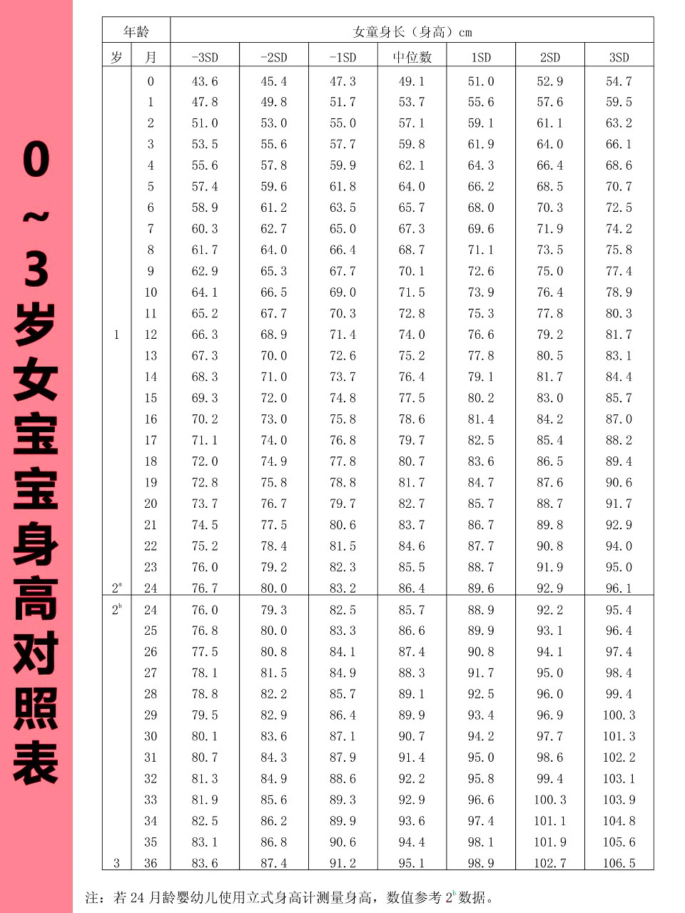 ✅生长迟缓:身高身长低于-2SD/-3SD