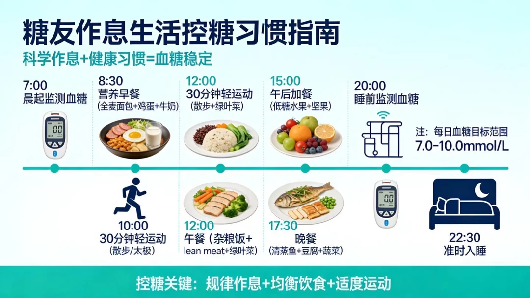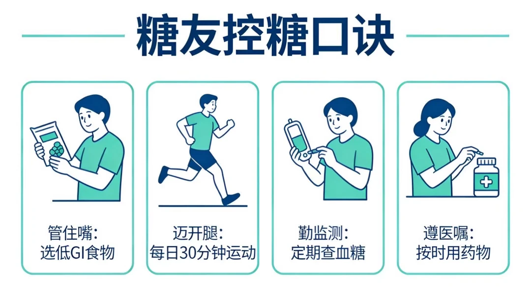 下面这些是糖友日常最实用、最容易坚持的控糖习惯,简单好记,照着做就能稳血糖: