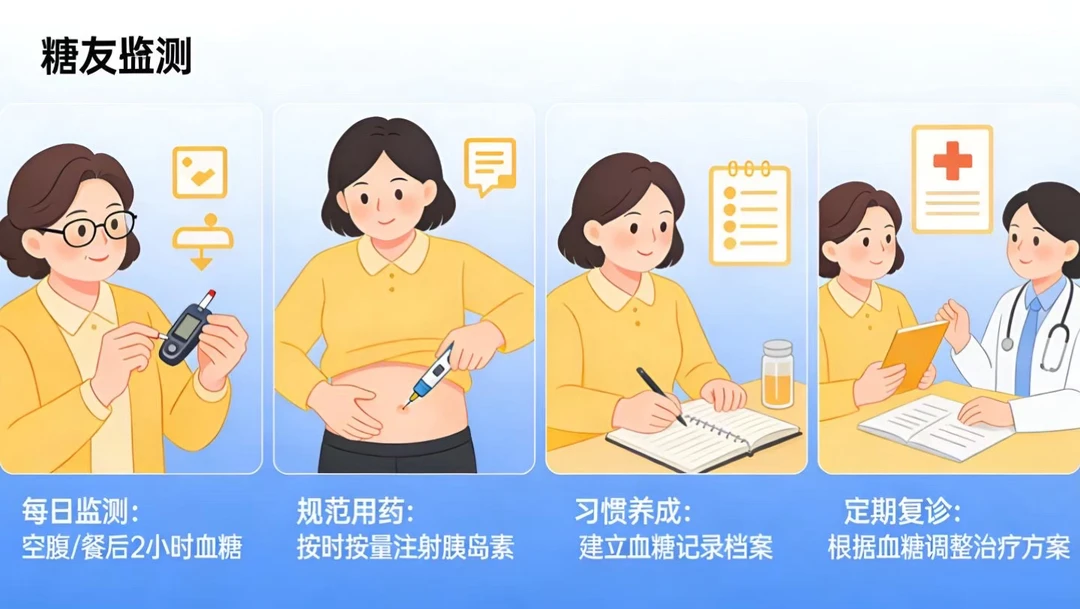 规律监测不乱药,血糖平稳身体好。