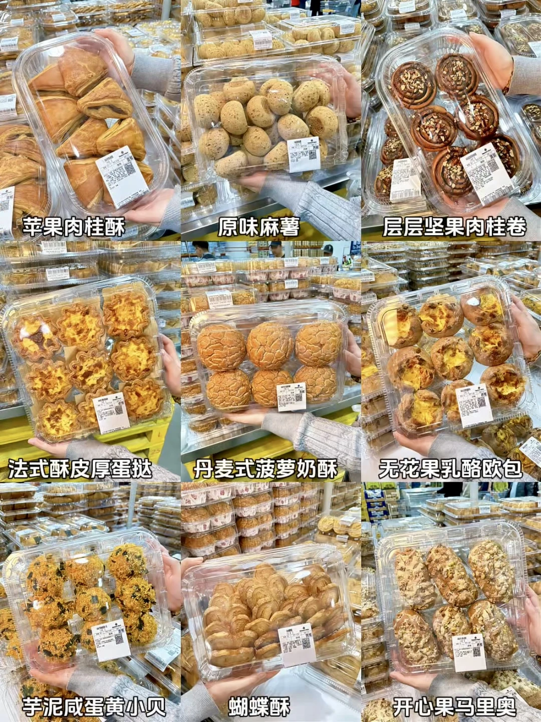 苹果肉桂酥、原味麻薯、层层坚果肉桂卷、法式酥皮厚蛋挞、丹麦式菠萝奶酥、无花果乳酪欧包、芋泥咸蛋黄小贝、蝴蝶酥、开心果马里奥