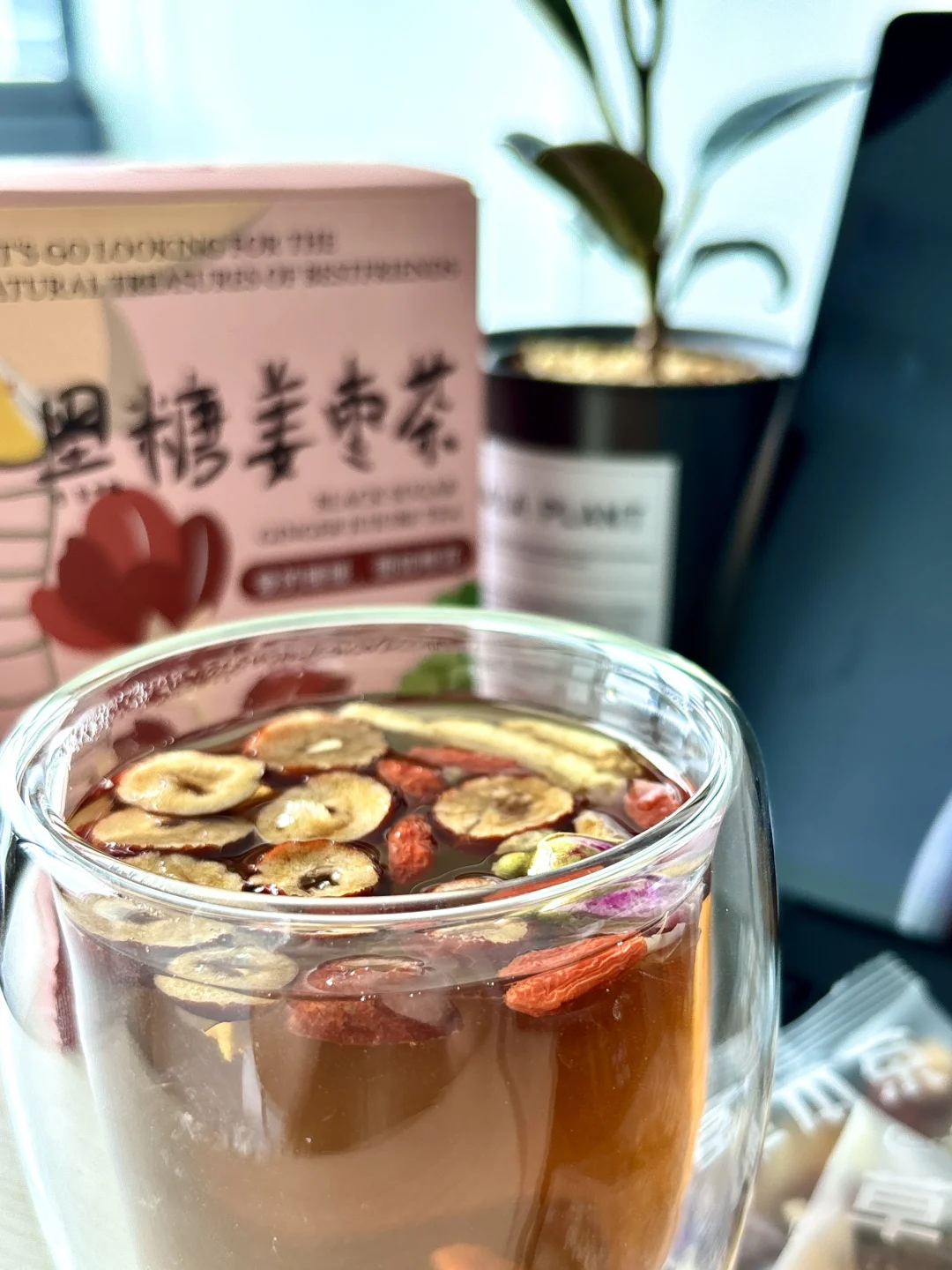 市面上叫“姜枣茶”的很多, 可一入口就懂差别: 有的只是淡姜水,有的只是甜枣水, 甚至喝不出半点食材本该有的本味。 而我们这一杯, 敢堂堂正正叫姜枣茶,是因为每一味都站得住脚。 🫚姜,用的是云南高原小黄姜 不催熟、不将就,慢慢长在红土地里 姜辣素足,香气正而不冲 那股暖,是从里到外透出来的 不呛、不燥,只安安稳稳熨帖全身 🫘 枣,选的是新疆灰枣 被阳光一点点晒透、养足 肉厚味纯,没有工业糖精的假甜 煮出的汤色,是自然温润的琥珀光 🎋 黑糖,坚持云南古法熬制 不是普通赤砂糖,更不靠添加剂调味 三斤甘蔗才熬出一斤糖 甜得有厚度、有层次,落胃都是踏实的暖 ✨ 更添人参与重瓣玫瑰 人参,补而不燥,悄悄给身体添底气 玫瑰,温柔清雅,中和温辛,多一分柔润香气 让整杯茶,暖得更有底气,香得更有层次 还有苹果的清鲜、桂圆的温润、枸杞的点睛 没有一味滥竽充数, 没有一味可以随便替代。 ✁ 拆开茶包,浓郁姜辛先扑鼻而来 入口,温润的姜辛从喉间缓缓透到胃里 回甘是苹果的清冽,混着黑糖的醇甜 尾调又飘来淡淡玫瑰香,人参的温润藏在其中 温、辛、甜、润,不腻不寡 喝下去,是从头到脚的安稳与舒服。💗
