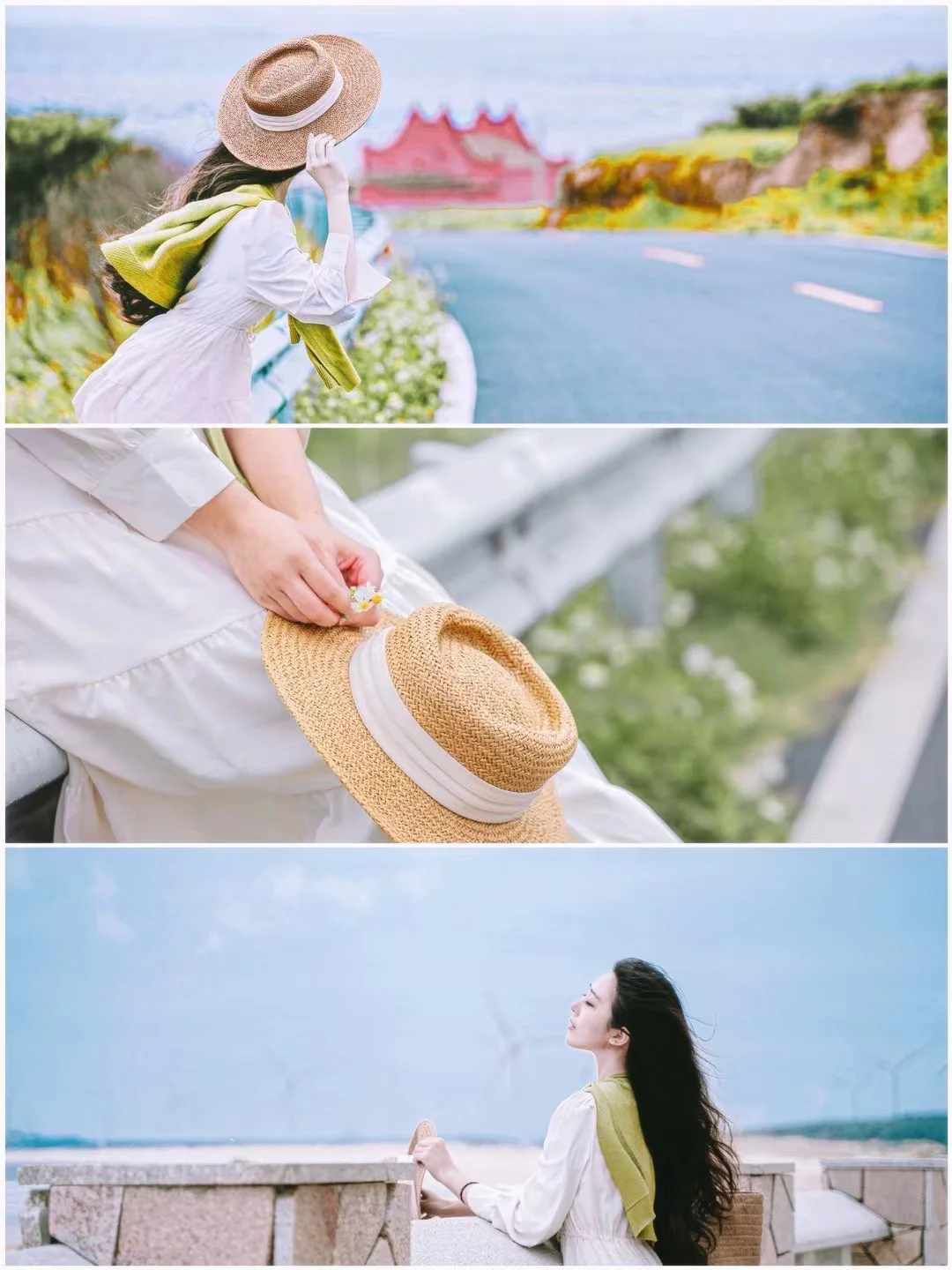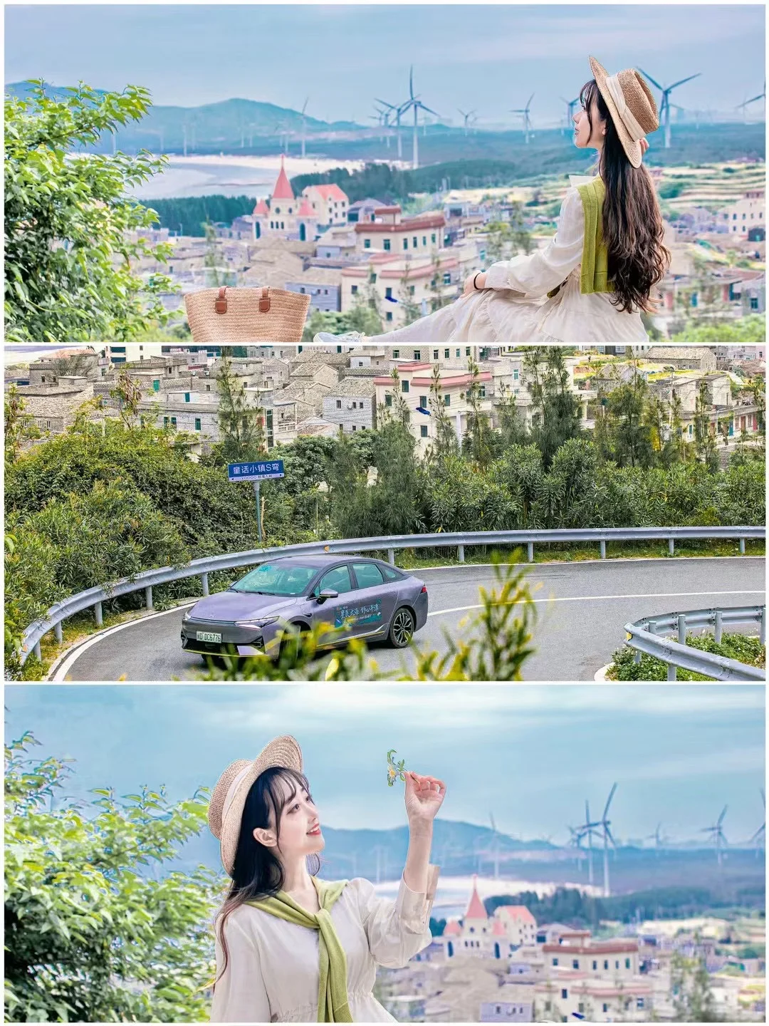 2️⃣醉美环岛路,每一个s湾都是惊喜,国彩村的童话小镇s弯这里真的像极了布拉格,一眼望去漫画般的云朵,风车,大海和教堂,治愈极了,🚘可导航玉堂直线,进去上坡走过弯道即可。