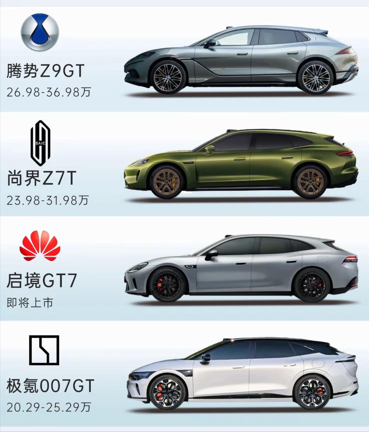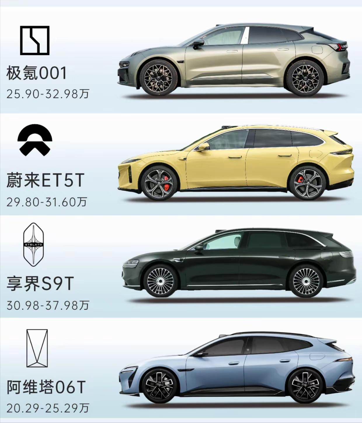 8款国产猎装车大乱斗!哪台是你的菜? 新能源猎装车彻底卷起来了,从20万到40万,个个都想当“瓦罐天花板”。简单过一遍: 极氪001(25.9万起):销量王,2.83秒破百,800V快充,六边形战士。 蔚来ET5T(29.8万起):换电+服务好,颜值在线,但价格略高。 享界S9T(30.98万起):华为全家桶,纯电/增程都有,主打豪华续航。 阿维塔06T(20.29万起):华为系最猛性能,三电机版本暴躁,价格真香。 腾势Z9GT(26.98万起):易三方+云辇-A,技术控首选,续航超1000km。 尚界Z7T(23.98万起):华为系最亲民,全系激光雷达+鸿蒙座舱,订单火爆。 启境GT7(即将上市):华为系最新,896线激光雷达,堆料狂魔。 极氪007GT(20.29万起):入门猎装,性价比拉满,适合预算有限但想要个性的。 一句话总结: 要均衡选001,要服务选ET5T,要华为科技看享界/阿维塔/尚界/启境,要技术炫技上腾势,要便宜又帅选007GT。这市场,越卷越精彩! 新手上路,定期更新! 劳烦关注,一定回关!