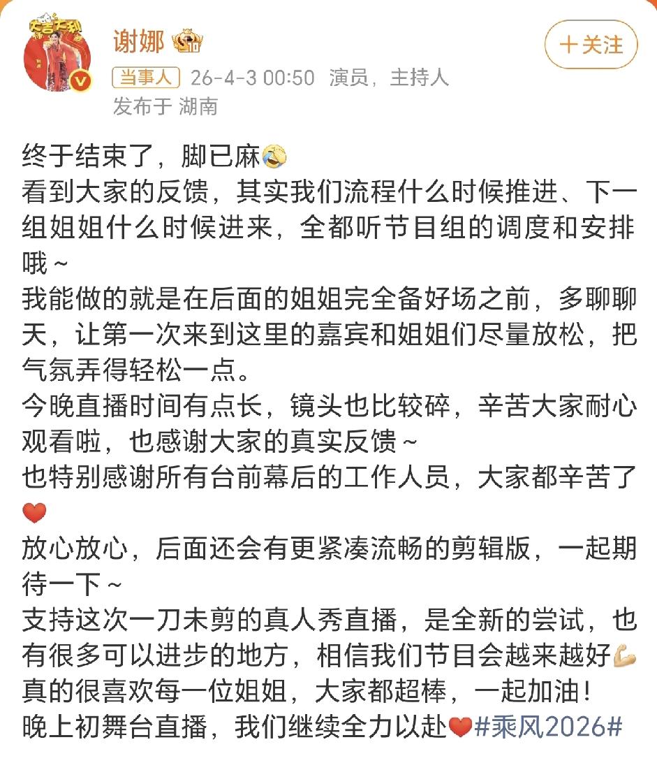 浪姐7真是首播就翻车了吗,明明还没开始唱,就一个初次见面会就被吐槽成这样,这是咋了? 抱着存疑的心情去看了一下,哎呀,王濛真是全网观众的嘴替啊,这也太磨叽了! 33位姐姐依次上场,播了好几个小时,而且杂乱无章,声音忽大忽小,画面东一个西一个,完全没有章法,这谁有耐心看完? 也难怪就连谢娜都发博抱怨,终于结束了,穿着高跟鞋和礼服一站好几个小时,每个人都重复差不多的流程,整个一个词穷立现啊! 者来女上台是张口就来,这要不是直播,肯定掐掉! 海涛妈说听着乌兰图雅的歌长大的, 三宝作为送考人已经一副生无可恋的样子,把亲老婆没办法推辞的心里话都写脸上了! 小齐已经笑到脸僵硬了[捂脸]! 浪姐一排排等着不说,送考人的戏更多,整个大厅里乌泱泱一大片,近百人的场面真像个菜市场啊! 虽然是直播不能同期剪辑,但是在直播时间没有准备流程吗,没有掌控时间吗,就这么洋洋洒洒的播了好几个小时,真佩服那些耐心看完观众,反正我是没看完[笑哭]! 这个直播水准,未来的舞台演唱令人担忧啊[捂脸]!浪姐7名单 浪姐7阵容